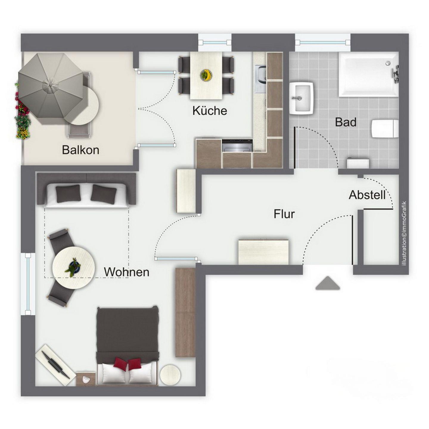 Die Wohnung 17 in der Anlage Seebach ist ein 1-Zimmer-Appartement mit einer Größe von 49m² und bietet somit Platz für bis zu 3 Personen.