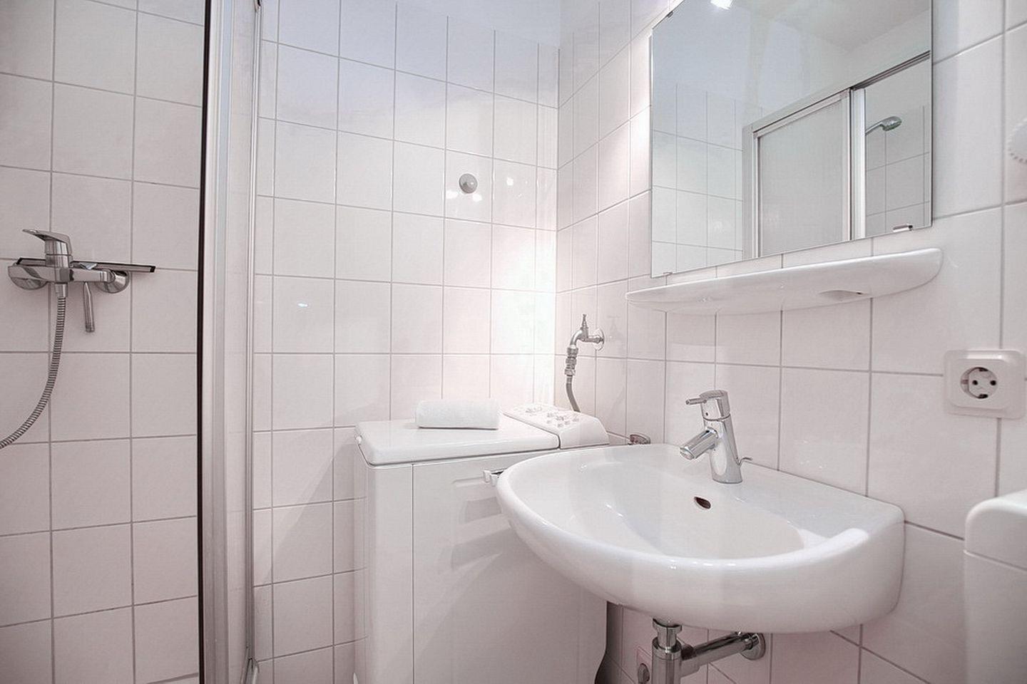 Die separate Küche ist ausgestattet mit einem Herd mit 4-Platten-Cerankochfeld, einem Backofen, Mikrowelle, Geschirrspüler und vielem mehr. Ein Duschbad gehört selbstverständlich zur Wohnung. Eine komfortable Waschmaschine ist bei einem längeren Aufenthalt angenehm. Auch ein Föhn ist vorhanden. Vor den Fenstern befinden sich Jalousien. Flur und Wohnzimmer sind mit Laminat ausgelegt, das Bad und die Küche sind gefliest. Bitte habe Verständnis, dass in dieser Wohnung nicht geraucht werden darf und Haustiere nicht erlaubt sind.