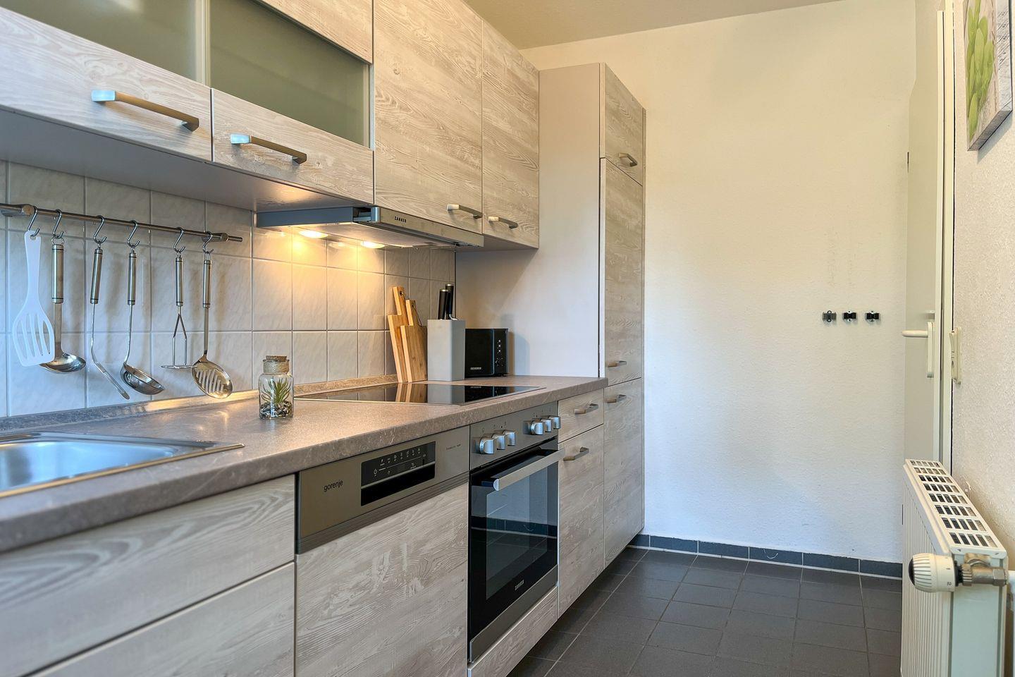 In der separaten Küche kannst du über einen Herd mit einem 4-Platten-Cerankochfeld und einem Backofen mit Umluft, einen Kühlschrank mit Gefrierfach, eine Mikrowelle, einen Geschirrspüler und vieles andere mehr verfügen.
