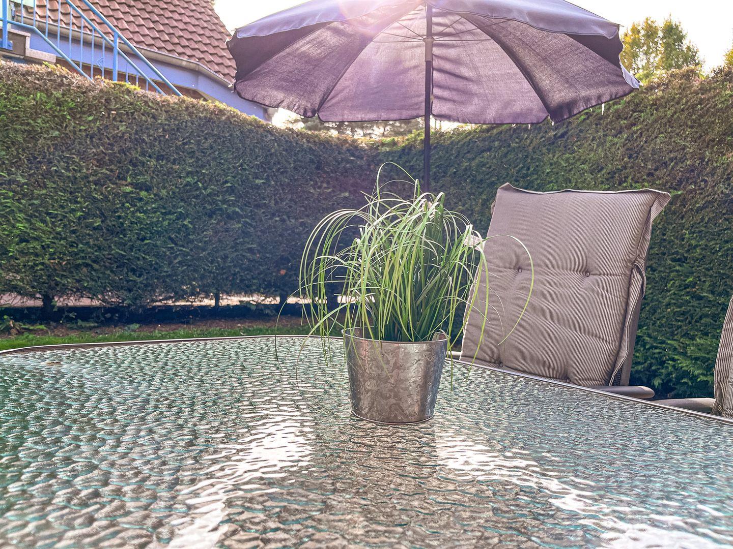 Im hellen und gefliesten Duschbad ist ein Fenster vorhanden. In dieser Ferienwohnung sind ein Kinderhochstuhl und ein Bollerwagen (Zusatzausstattung: ohne Gewähr) inklusive. Mitgebrachte Fahrräder können im Fahrradständer am Haus abgestellt werden. In dieser Nichtraucherwohnung sind maximal zwei Haustiere erlaubt.