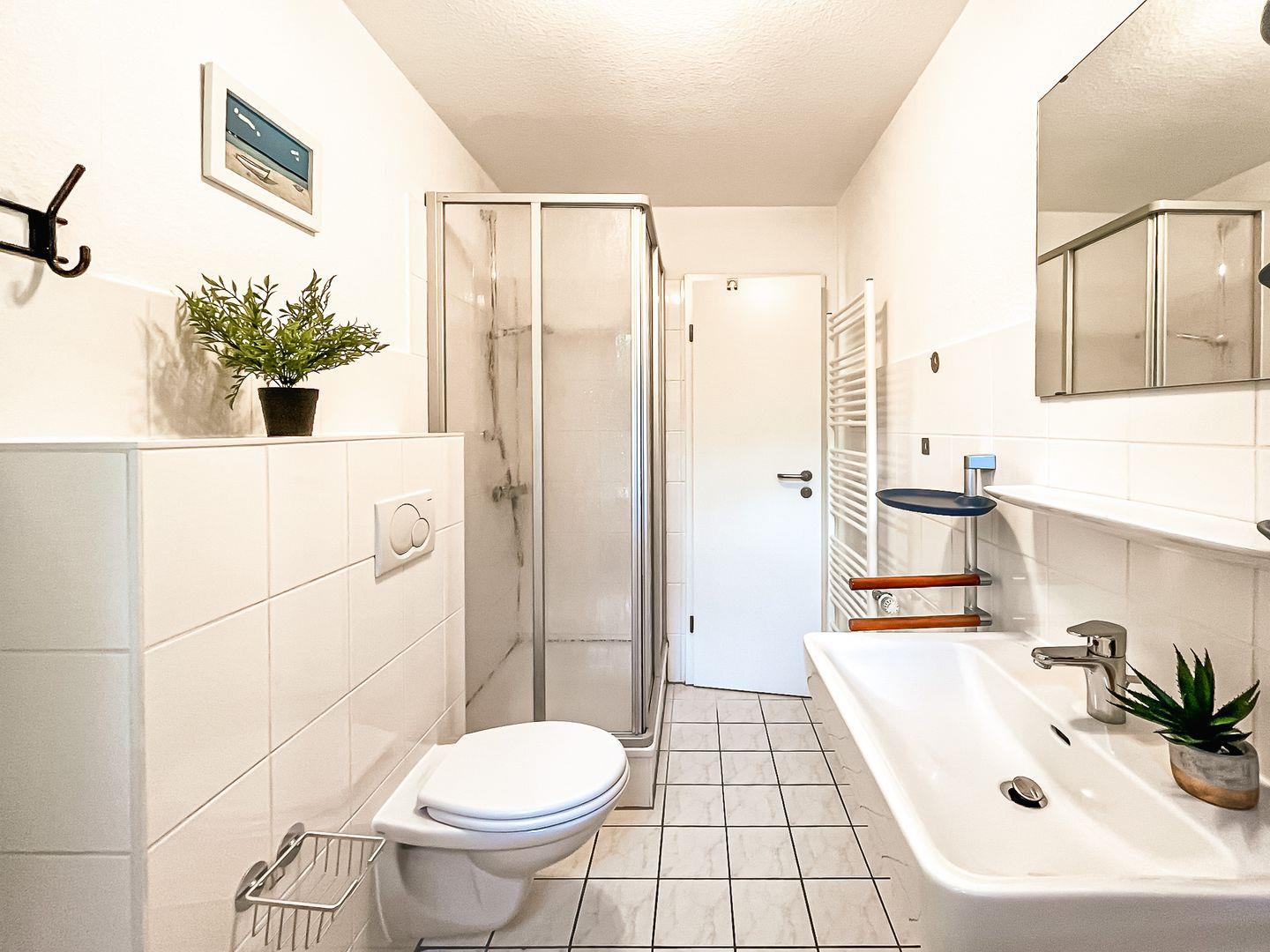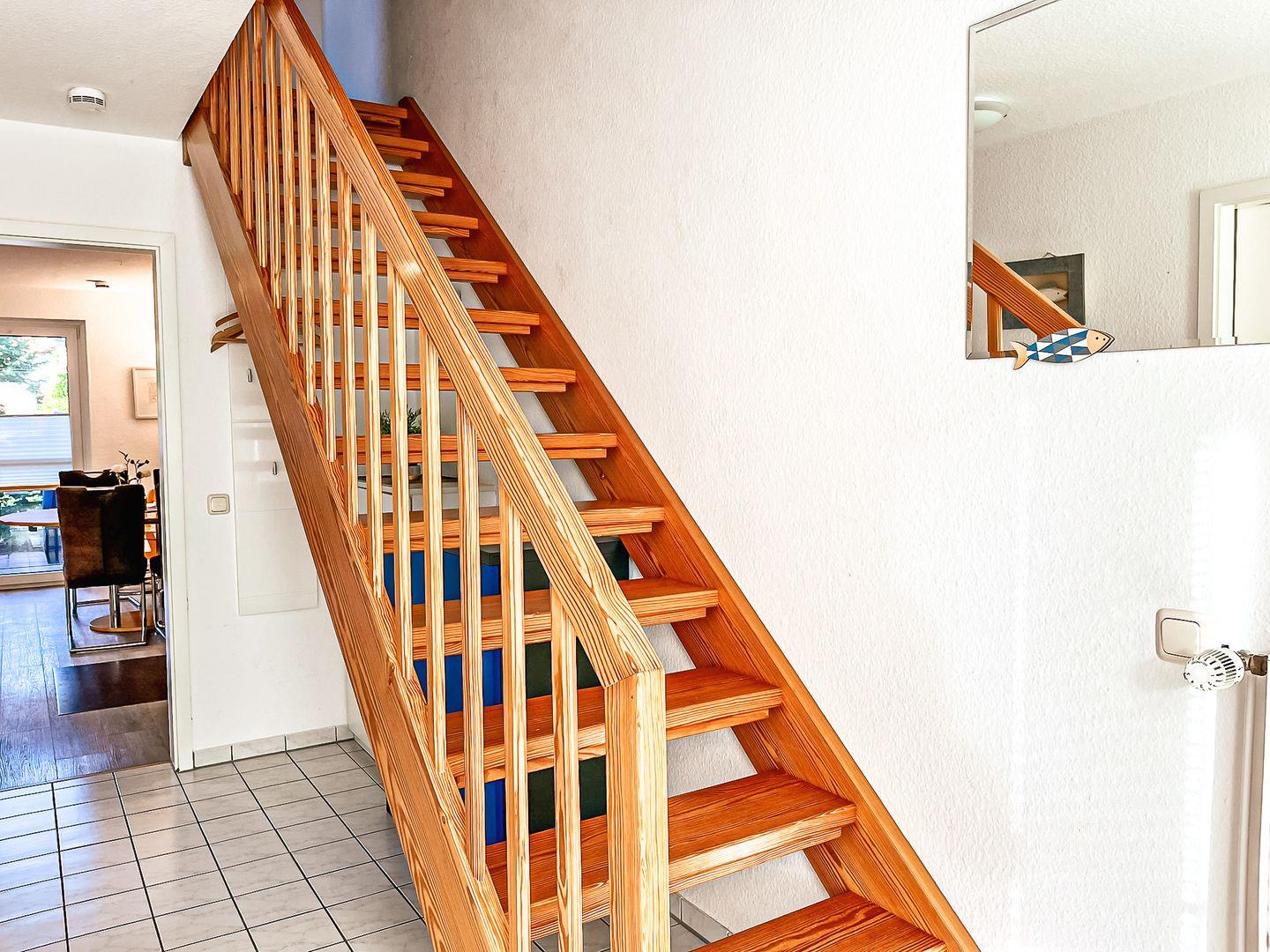 Als Schlafmöglichkeiten erwarten dich ein Doppelbett (2 x 100 x 200 cm) in einem Schlafzimmer, zwei Einzelbetten (je 90 x 200 cm) im zweiten Schlafzimmer. Für unsere kleinen Urlauber steht ein Hochstuhl bereit. Das Ferienhaus hat im Erdgeschoss ein Duschbad inklusive Waschmaschine und im Obergeschoss ein zusätzliches WC.