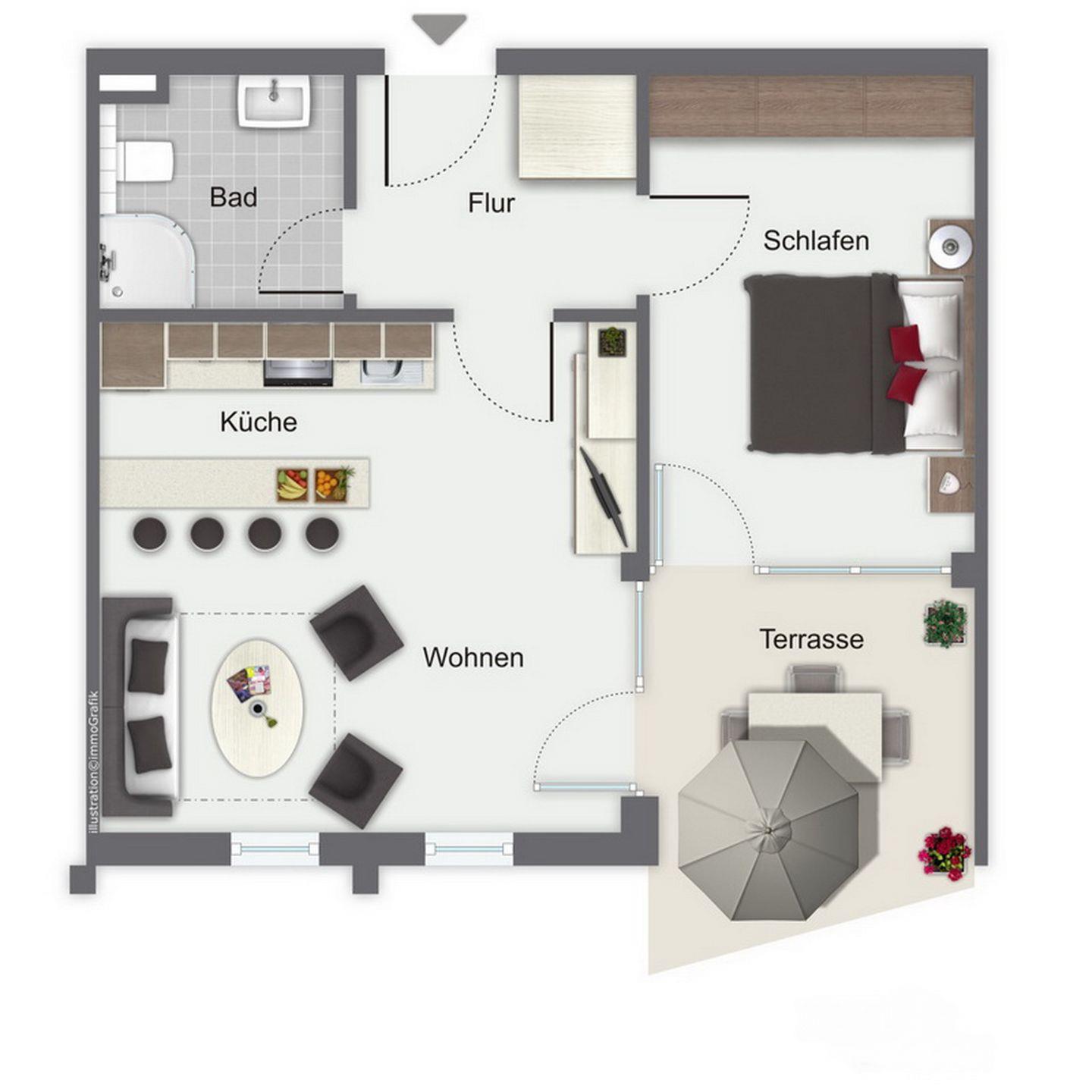 Die Ferienwohnung Nr. 13 in der Anlage Likedeeler ist für bis zu 4 Personen geeignet. Du findest sie im Erdgeschoss und sie bietet auf ca. 48 m² ein Wohnzimmer mit Küchenzeile, ein Schlafzimmer, ein Duschbad und eine teilüberdachte Süd-Terrasse. Auf der Terrasse stehen ein Tisch mit vier Stühlen und zwei bequeme Sonnenliegen. Der Strand ist nur etwa 70 Meter entfernt.