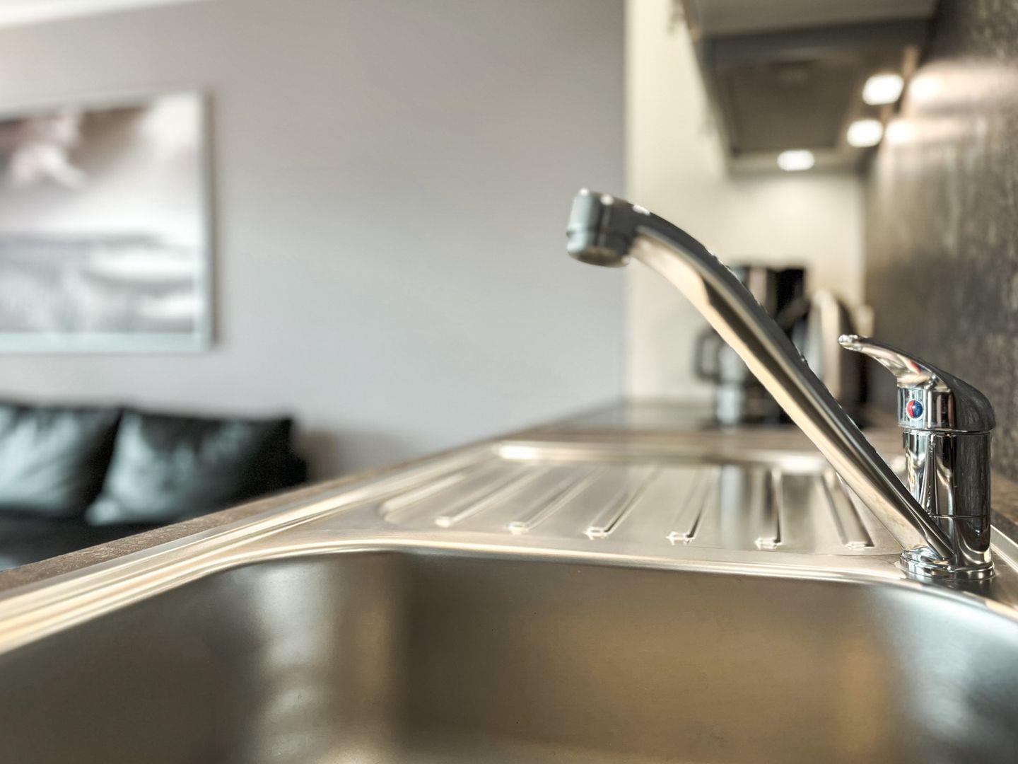 Im Wohnbereich gibt es eine Schlafcouch (140 x 200 cm), auf der zwei weitere Personen schlafen können. Eine Stereoanlage und ein TV-Flatscreen sorgen für Unterhaltung. Der Boden ist mit Laminat ausgelegt.