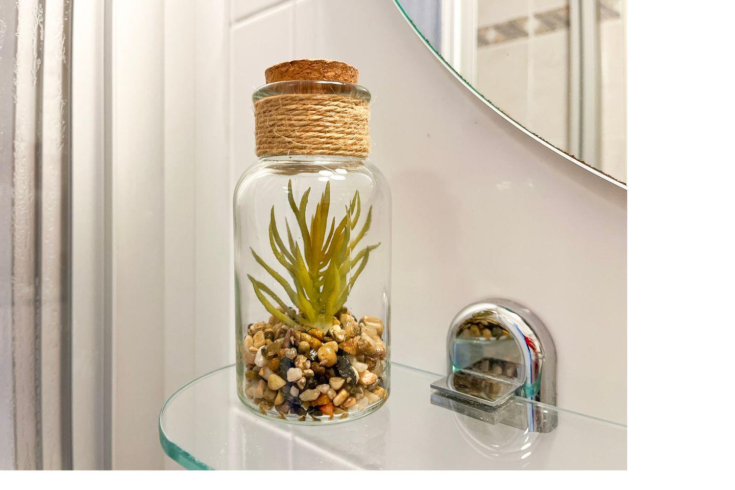 Im oberen Bereich befinden sich 2 separate Schlafzimmer mit 2. TV sowie Verdunklungsvorhängen und ein größeres Badezimmer. Die Schlafzimmer sind mit Laminat ausgelegt. In einem Schlafzimmer befindet sich ein Doppelbett (2 x 90 x 200 cm) und im 2. Schlafzimmer sind 2 Einzelbetten (90 x 200 cm). Ein geräumiger Kleiderschrank bietet viel Platz für deine Reiseutensilien.