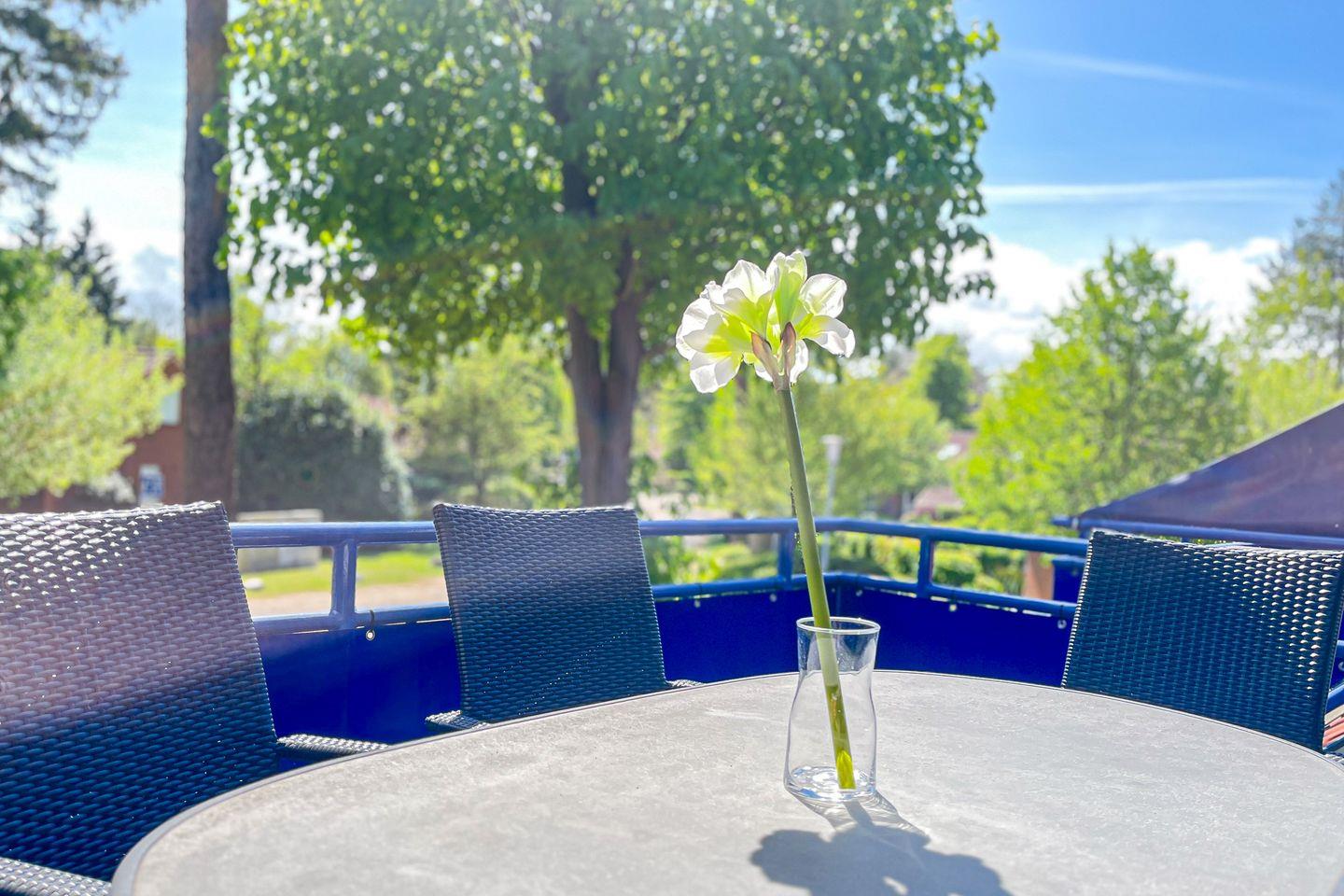 Vom möblierten, sonnigen Balkon hast du einen weiten Blick, da das Haus am Rand der Ferienanlage liegt. Dein gemütliches, ebenso sonniges Wohnzimmer ist mit einem Esstisch für 6 Personen und einer bequemen Polsterecke ausgestattet. Für dein Wohlbefinden sorgen außerdem Flachbild-TV, Blue-Ray-Player, Stereoanlage, Spiele, DVDs und für Leseratten eine Auswahl an Büchern.
