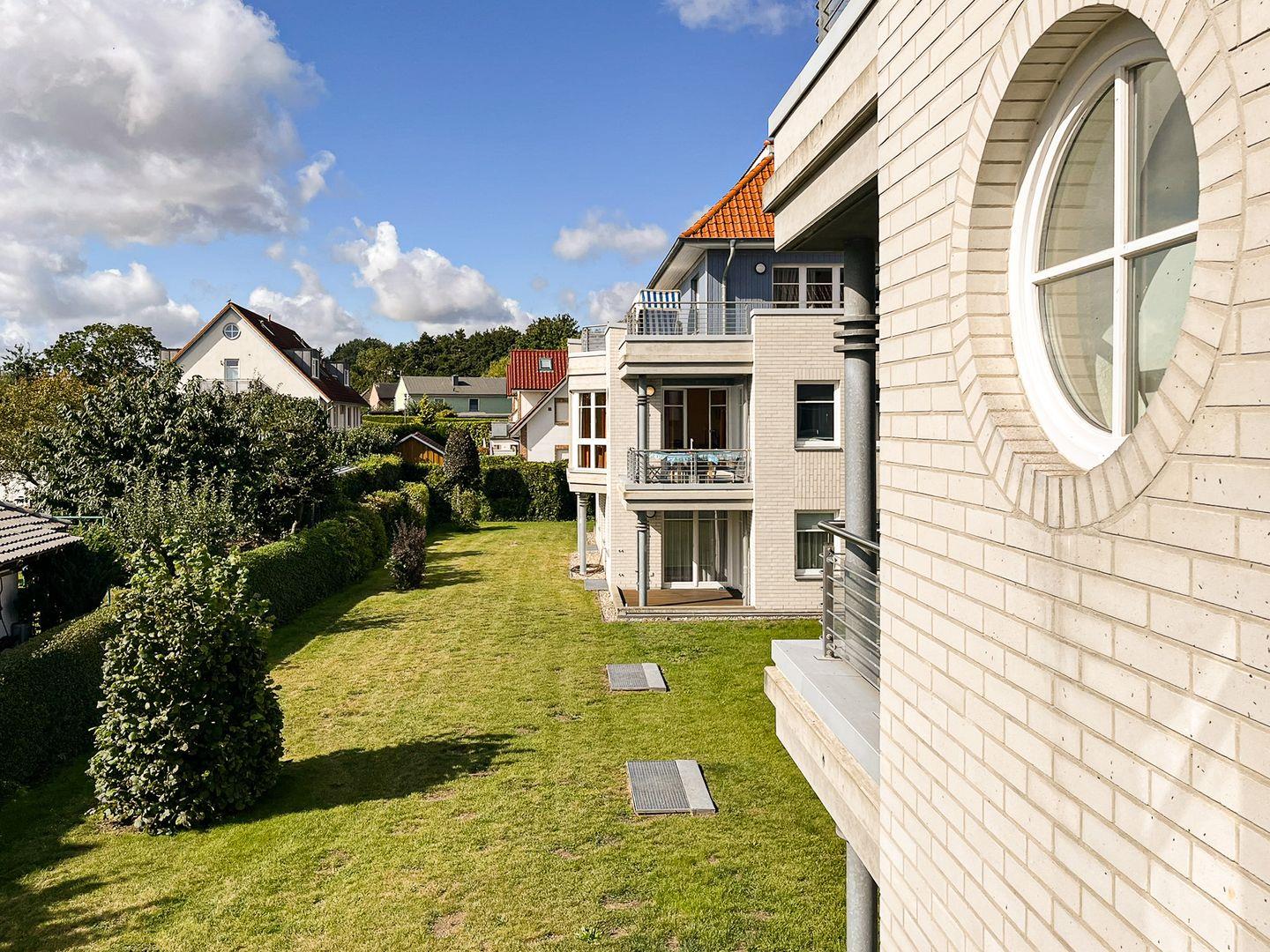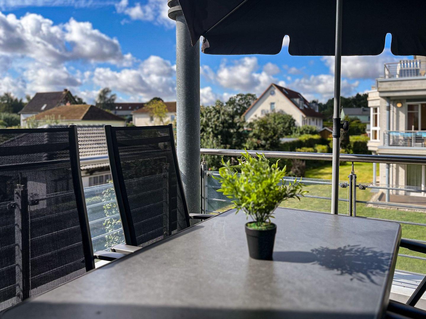 Die komfortable Ferienwohnung mit schönem Seeblick und Balkon in Süd-West-Lage liegt im 1. OG im Haus 1. Auf ca. 58 m² erwarten dich ein Wohnzimmer mit Blick auf die Ostsee, zwei Schlafzimmer, eine Küchenzeile und ein Duschbad. Zum Strand sind es vom Dünenblick nur ca. 50 m.