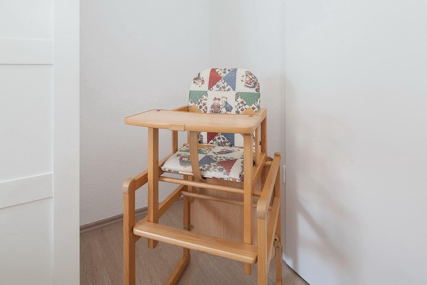 Der Bodenbelag im Wohn- und Schlafbereich ist Laminat. Im Duschbad sowie im Flur wurden Fliesen verlegt. Für den Urlaub mit Kindern findest du hier ein Kinderreisebett (inklusive), einen Kinderhochstuhl (inklusive), eine Wickelauflage, einen Kindertritt und eine Auswahl an Spielen für eine kindgerechte Ausstattung.