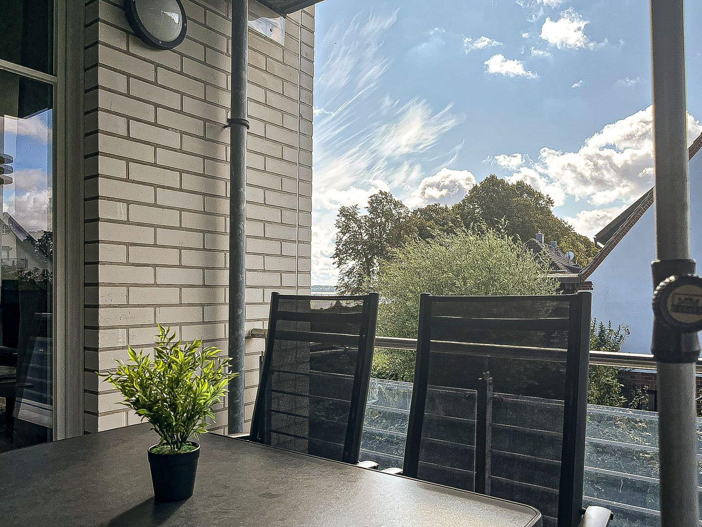 Das Wohnzimmer ist lichtdurchflutet und mit einer bequemen Eck-Couch, Flachbild-TV (SAT-Anlage) und einer Stereoanlage mit CD-Player ausgestattet. Vom Wohnzimmer aus gelangst du auf den möblierten Balkon. Von hier aus kannst du den seitlichen Teilseeblick genießen.