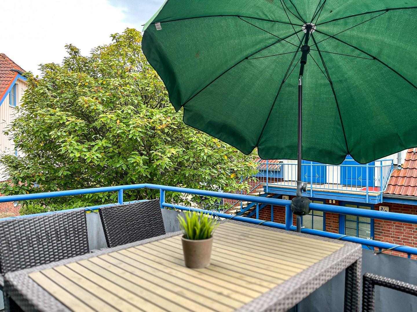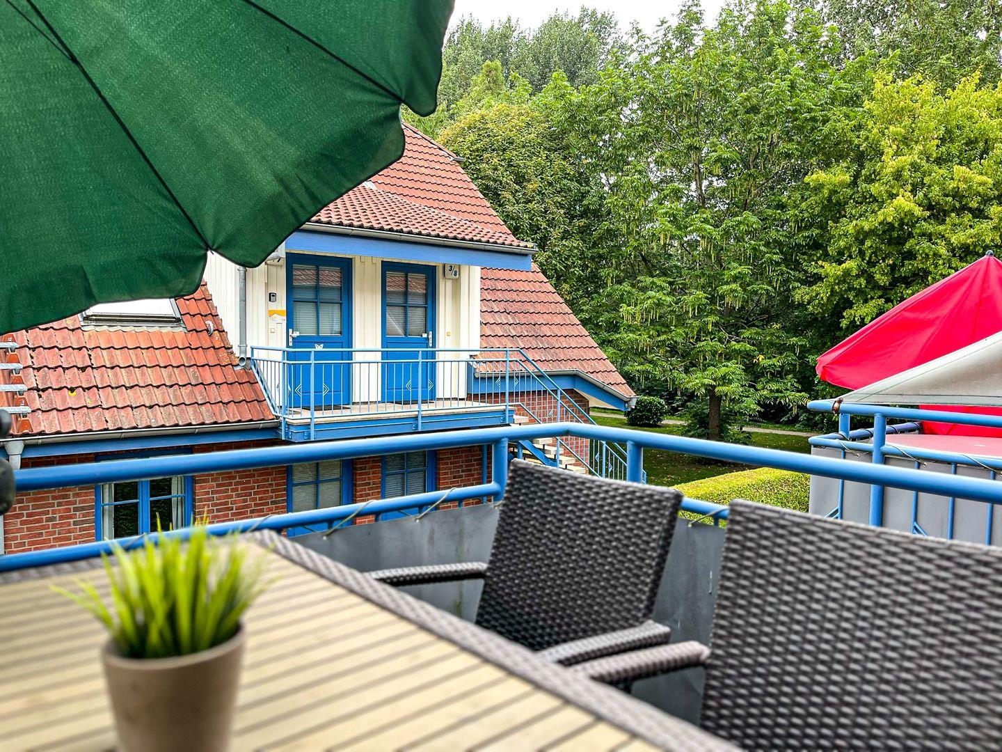 Diese modern eingerichtete 4-Zimmer-Ferienwohnung mit einem möblierten Balkon in Süd-West Lage liegt im 1. OG am Ende des Hauses und ist über eine Außentreppe zu erreichen. Du bewohnst die Wohnung mit ca. 68 m² Wohnfläche, die sich über zwei Etagen erstreckt und über einen Wohn- und Essbereich, eine Küchenzeile, drei Schlafzimmer, ein Gäste-WC und ein Duschbad verfügt. Die Entfernung zum Strand beträgt von der Ferienanlage Papillon etwa 250 m.