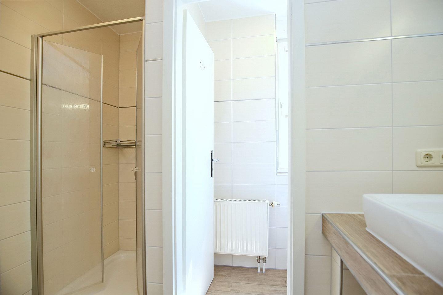 Das Bad ist mit zwei modernen Waschtischen, einer bodengleichen Duschkabine sowie einem separaten WC mit Fenster ausgestattet. Zusätzlich steht dir in dieser Wohnung ein Gäste-WC zur Verfügung. Fahrräder können im Fahrradkeller und im Fahrradständer am Haus abgestellt werden. In dieser Nichtraucherwohnung sind Haustiere nicht erlaubt.