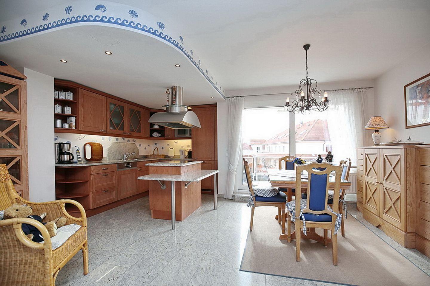 Hier erhältst du den Luxus, der deinen Urlaub zu etwas Besonderem macht. Im Ortszentrum gelegen, erwartet dich eine maritim eingerichtete Ferienwohnung. Das Wohnzimmer ist mit zwei Wohlfühlsofas ein echter Hingucker. Für gemütliche und entspannende Abende sorgt der eingebaute Kamin. Der angeschlossene Essbereich weist schöne Details auf. Selbstverständlich steht dir ein Flachbildfernseher zur Verfügung. Für Sonnenhungrige hat das Ferienappartement zwei Balkone. Der erste Balkon ist nach Nord-Ost ausgerichtet. Hier kannst du im Strandkorb über die Dächer von Boltenhagen blicken. Auf dem zweiten Balkon, der nach Süden ausgerichtet ist, kannst du die wärmenden Strahlen der Nachmittagssonne genießen.