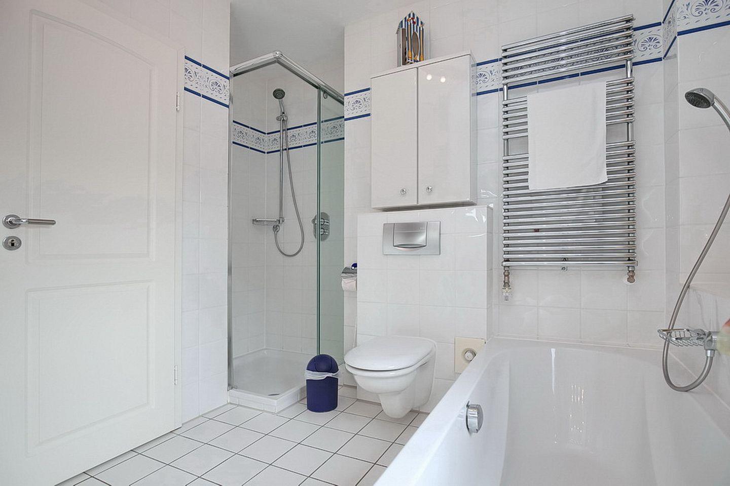 Die modern eingerichtete Küche der Ferienwohnung besticht durch ihre freistehende Kochinsel und die sehr gute Ausstattung mit Kühlschrank inklusive Gefrierfach, Cerankochfeld, Herd und Spülmaschine. Das exklusive, geflieste Badezimmer verfügt über Dusche und Badewanne. Ebenfalls steht dir hier eine Waschmaschine zur Verfügung.