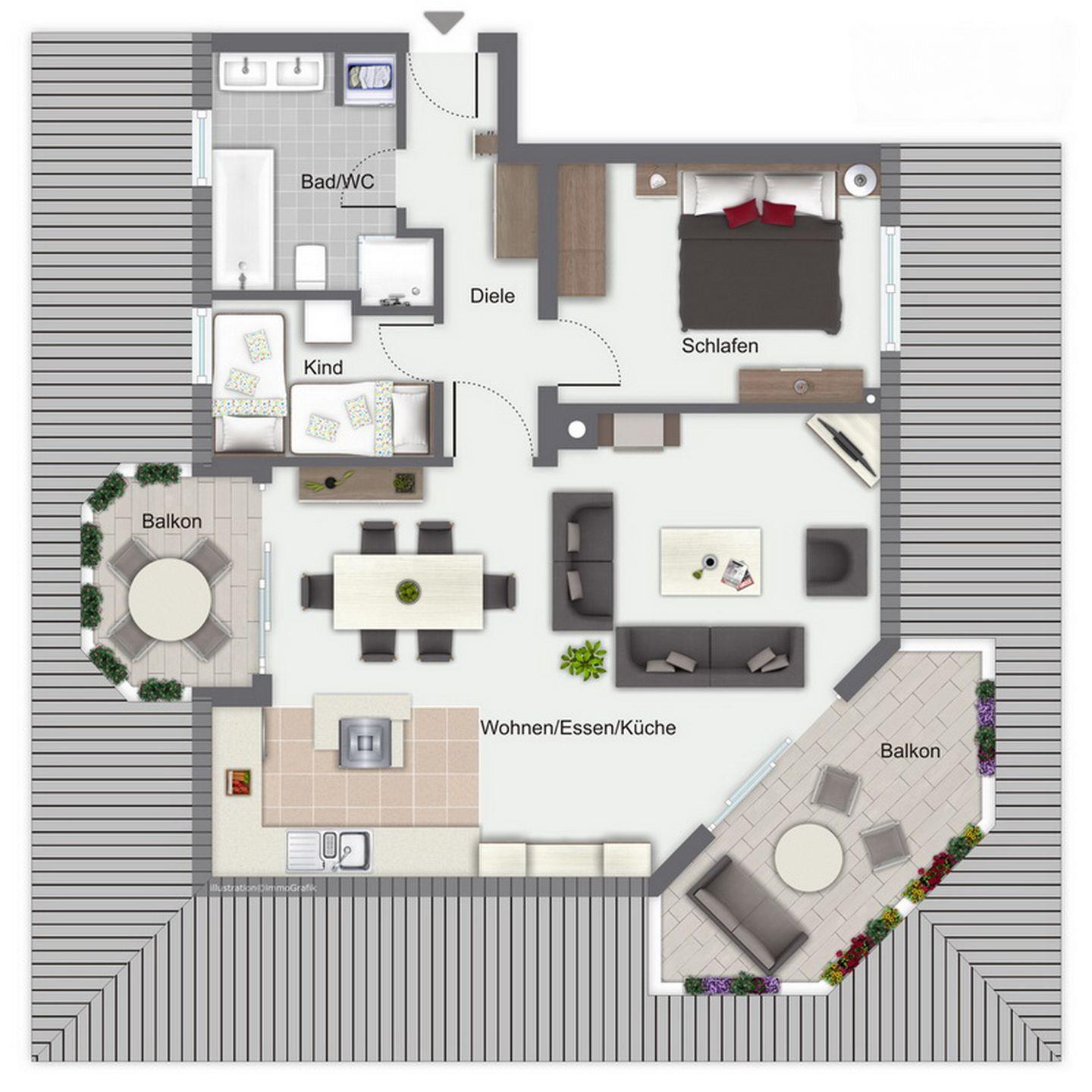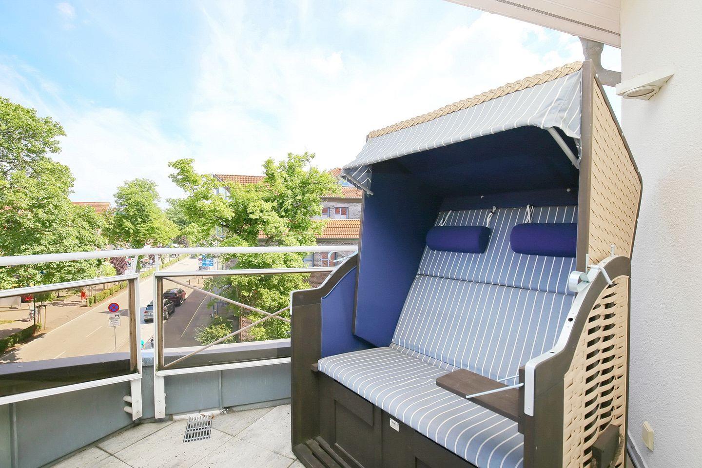 Im 2. Obergeschoss der Anlage Waterkant gelegen, verfügst du in der Ferienwohnung auf ca. 85 m² über ein Wohnzimmer mit Küchenzeile, zwei Schlafzimmer, ein Badezimmer und einen möblierten Südbalkon. Zum Strand sind es ca. 100 Meter.
