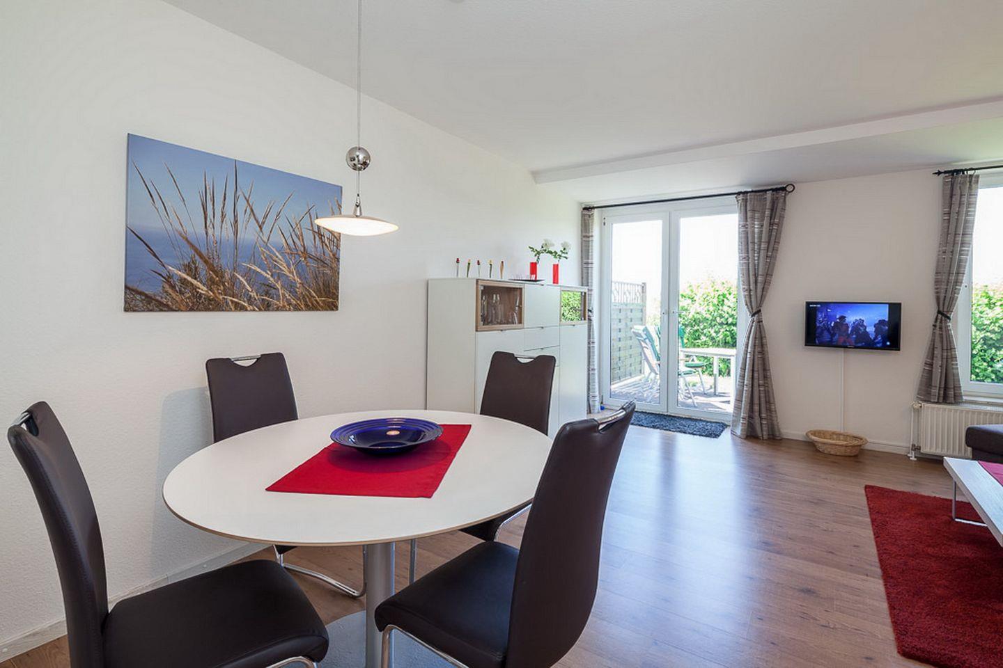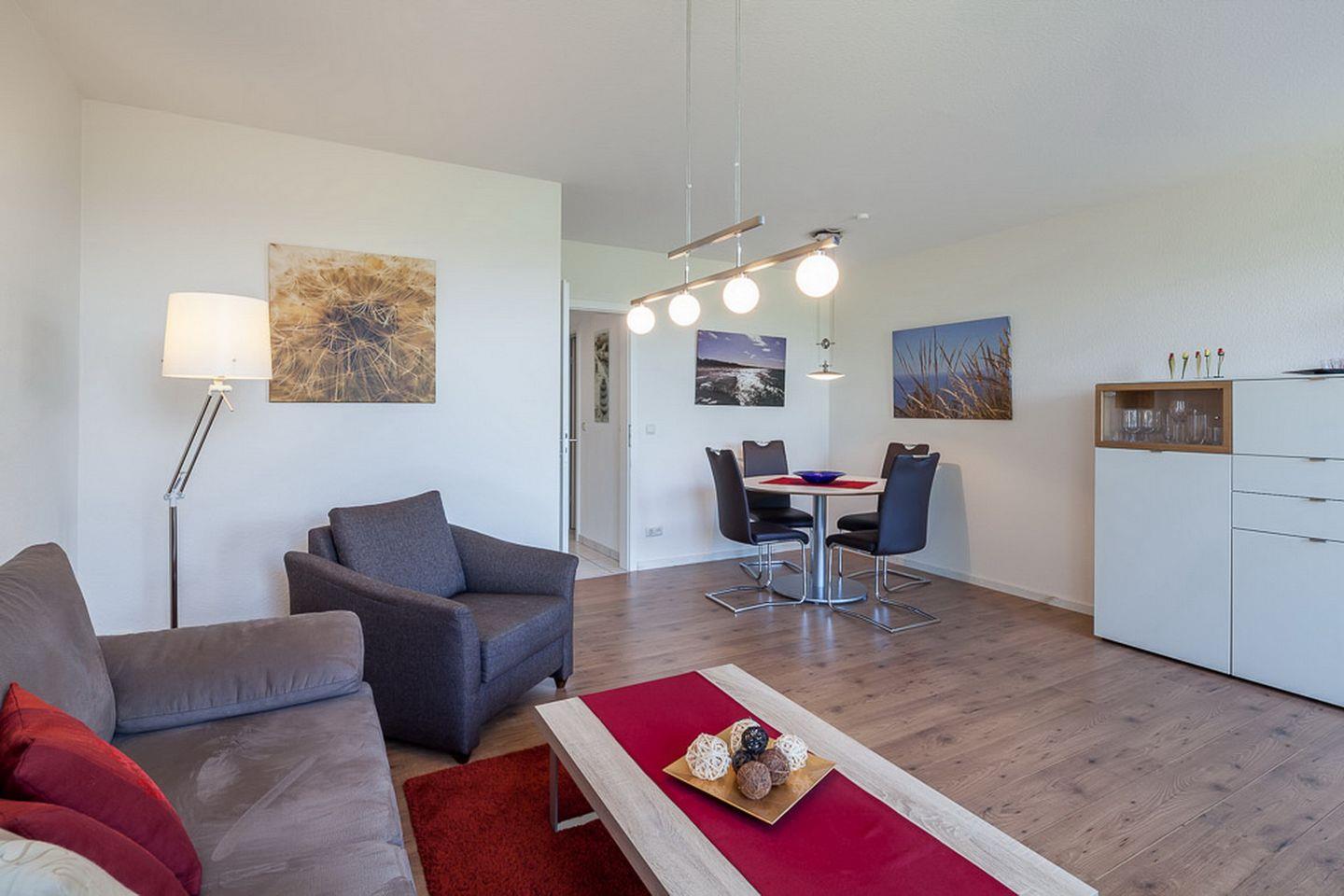 Es erwartet dich eine 2-Zi.-Wohnung in einem modernen Ambiente. Die Wohnung liegt im Erdgeschoss und hat einen eigenen Zugang. Für erholsame Urlaubstage stehen dir auf ca. 54 m² ein Wohnzimmer, ein Schlafzimmer, eine separate Küche, ein Duschbad und eine Terrasse zur Verfügung. Die Entfernung zum Strand beträgt von der Ferienanlage Sünnslag ca. 400 m.