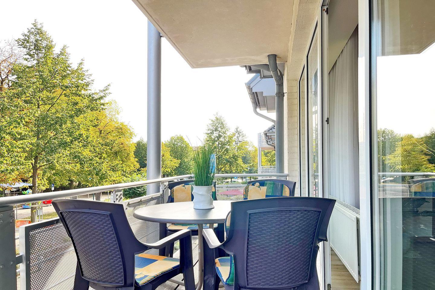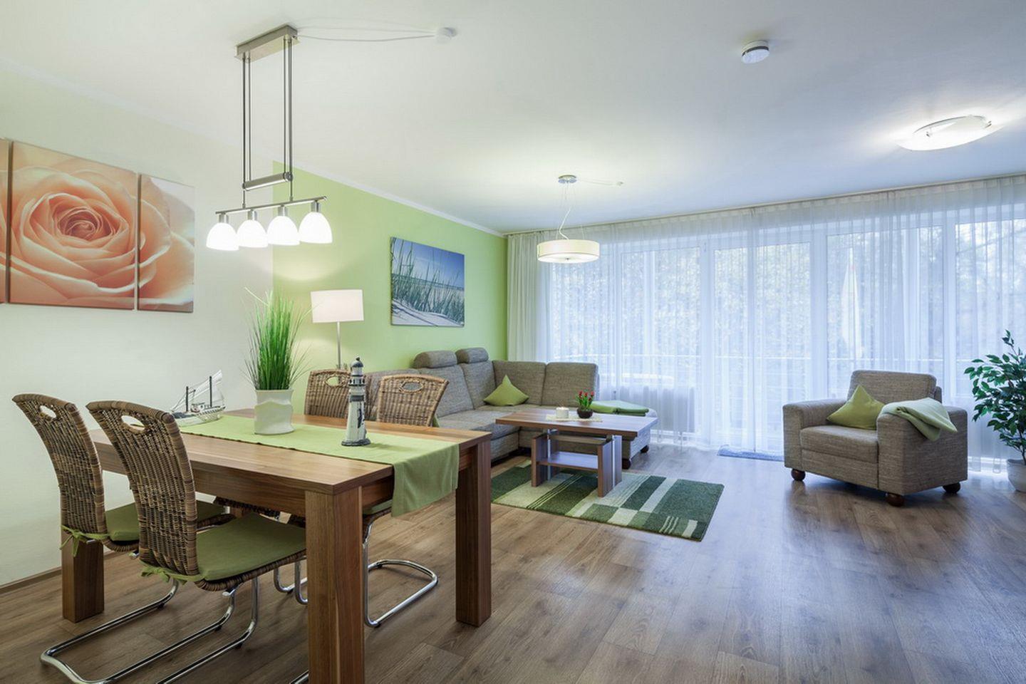 In dieser stilvoll eingerichteten 2-Zimmer-Ferienwohnung im 1. Obergeschoss der Anlage Residenz Seestern bieten sich auf 60 m² ein Wohnzimmer mit Küchenzeile, ein Schlafzimmer, ein Duschbad sowie ein Balkon zur Seeseite. Zum Strand sind es nur ca. 100 m.