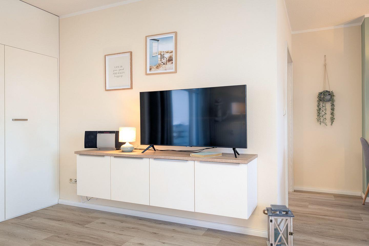 Diese im modernen Stil eingerichtete und exklusive Ferienwohnung liegt im DG und verfügt auf ca. 54 m² über ein Wohnzimmer mit Küchenzeile, ein Schlafzimmer, ein Duschbad und zwei Balkone. Zum Strand sind es nur ca. 100 m.