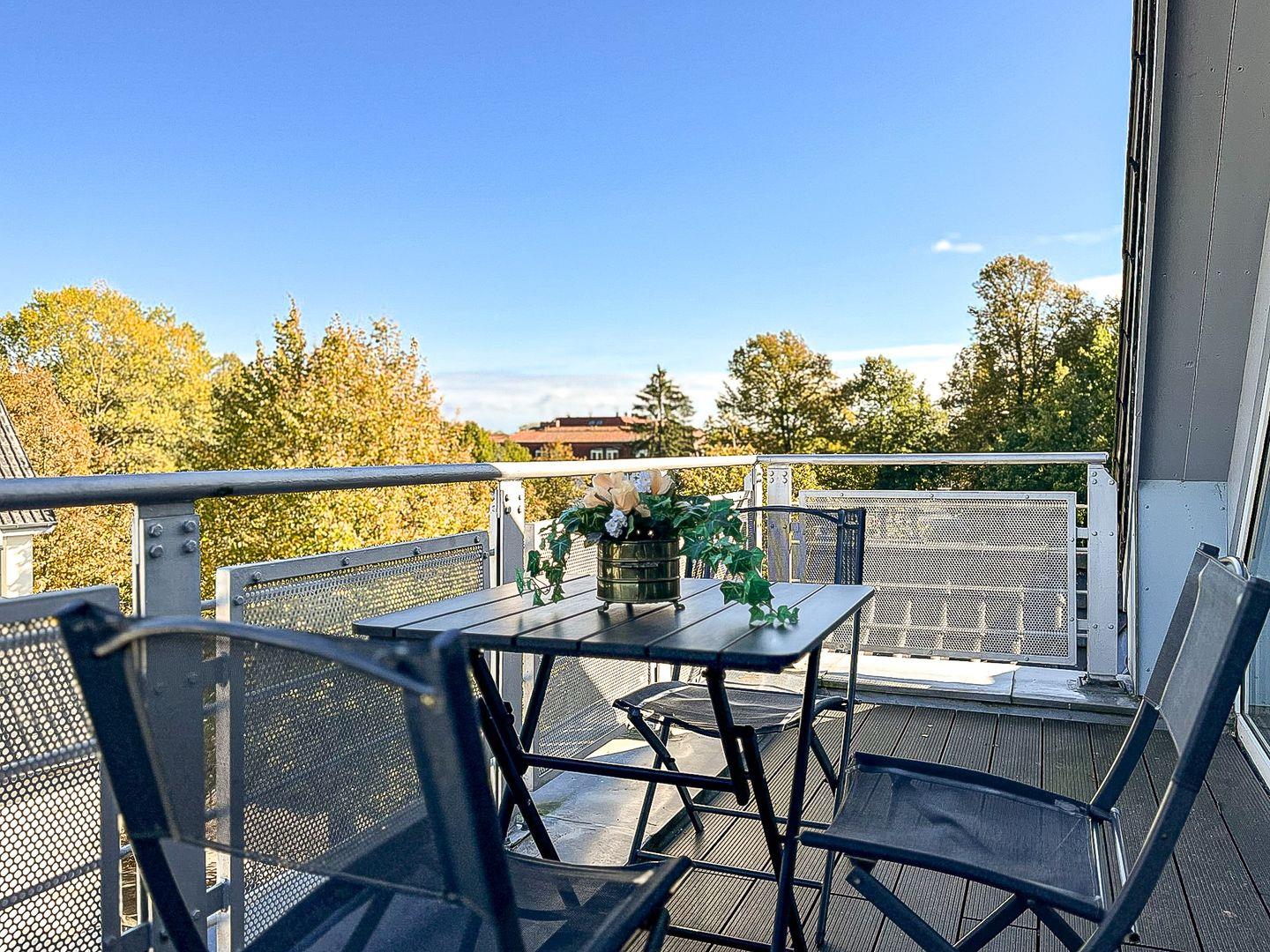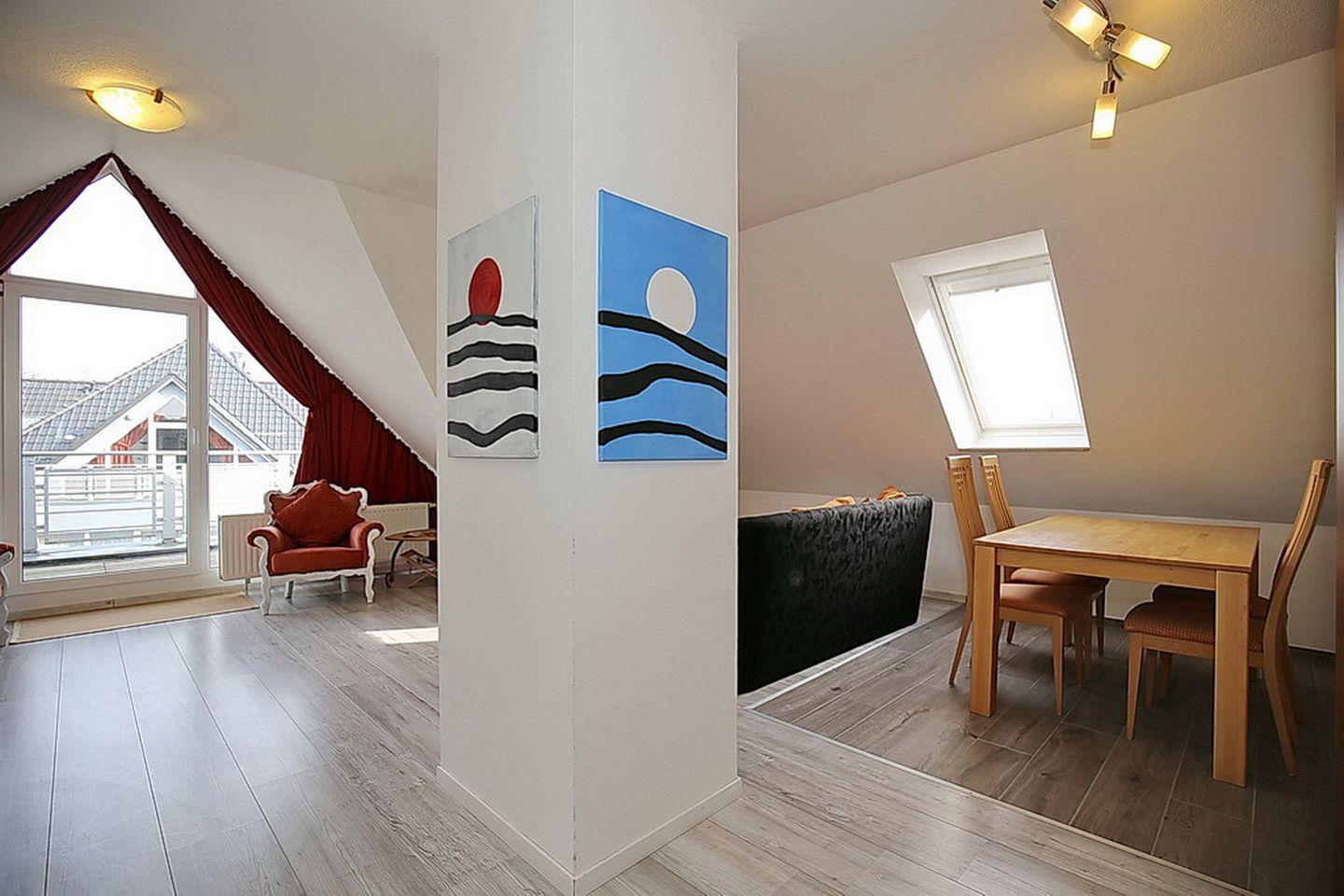 Für Gemütlichkeit und Komfort in deinem Urlaub sorgt diese ca. 65 m² große, exklusive Nichtraucher-Ferienwohnung im 3. Obergeschoss. Hier erwartet dich ein Wohnzimmer mit Küchenzeile, das Schlafzimmer sowie das Duschbad. Der Balkon ist zur Seeseite ausgerichtet. Zum Strand sind es nur ca. 100 Meter.