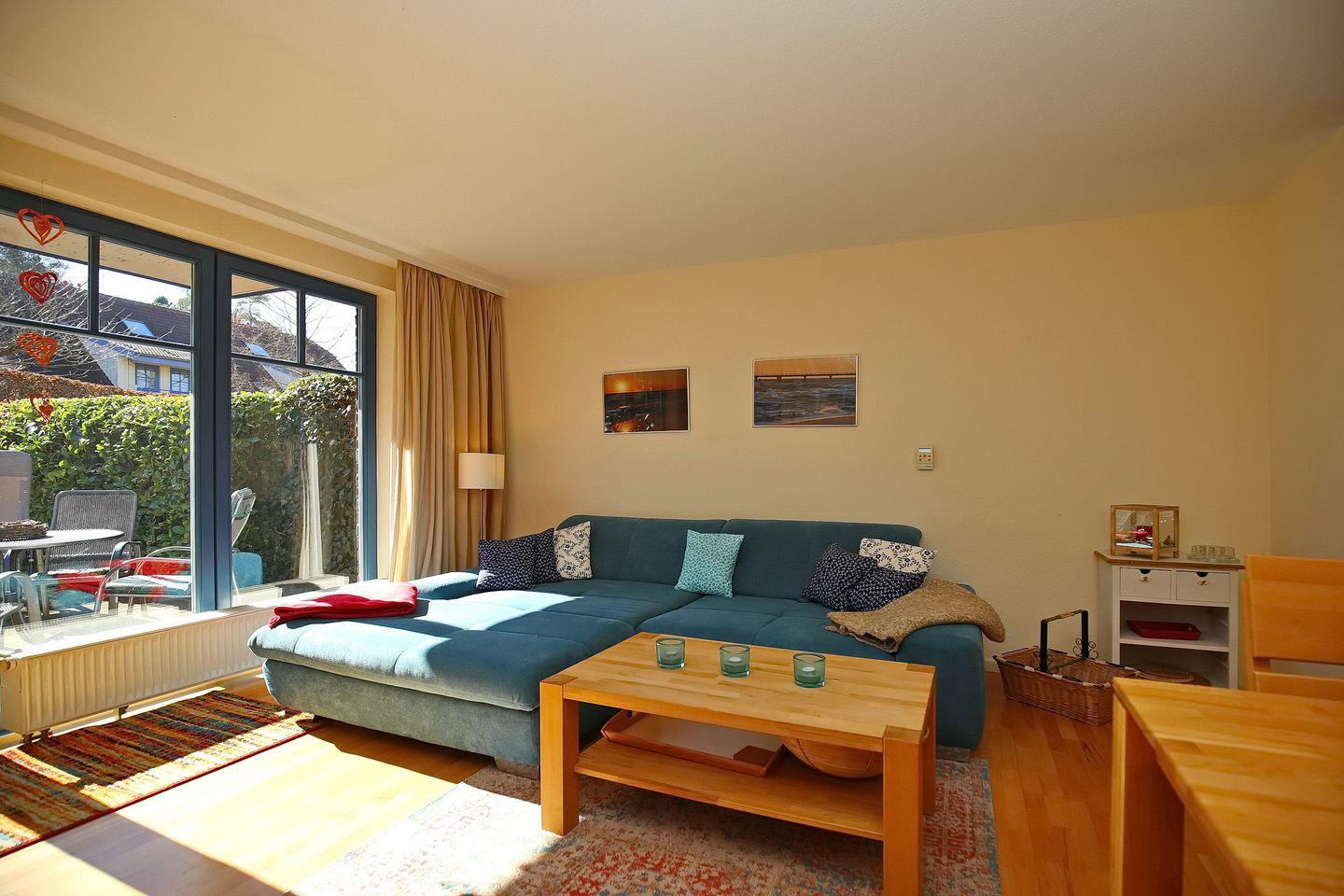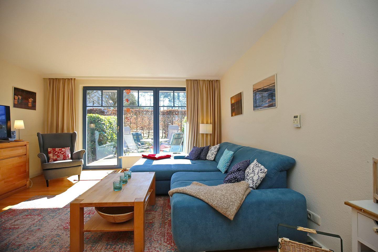 Die Ferienwohnung mit Terrasse in Süd-West Ausrichtung liegt im Erdgeschoss des Hauses 7. Dir erwartet auf 55 qm² ein Wohn- und Essbereich, ein Schlafzimmer, eine Küchenzeile und ein Duschbad. Zum Strand sind es von der Ferienanlage Papillon etwa 250 m.