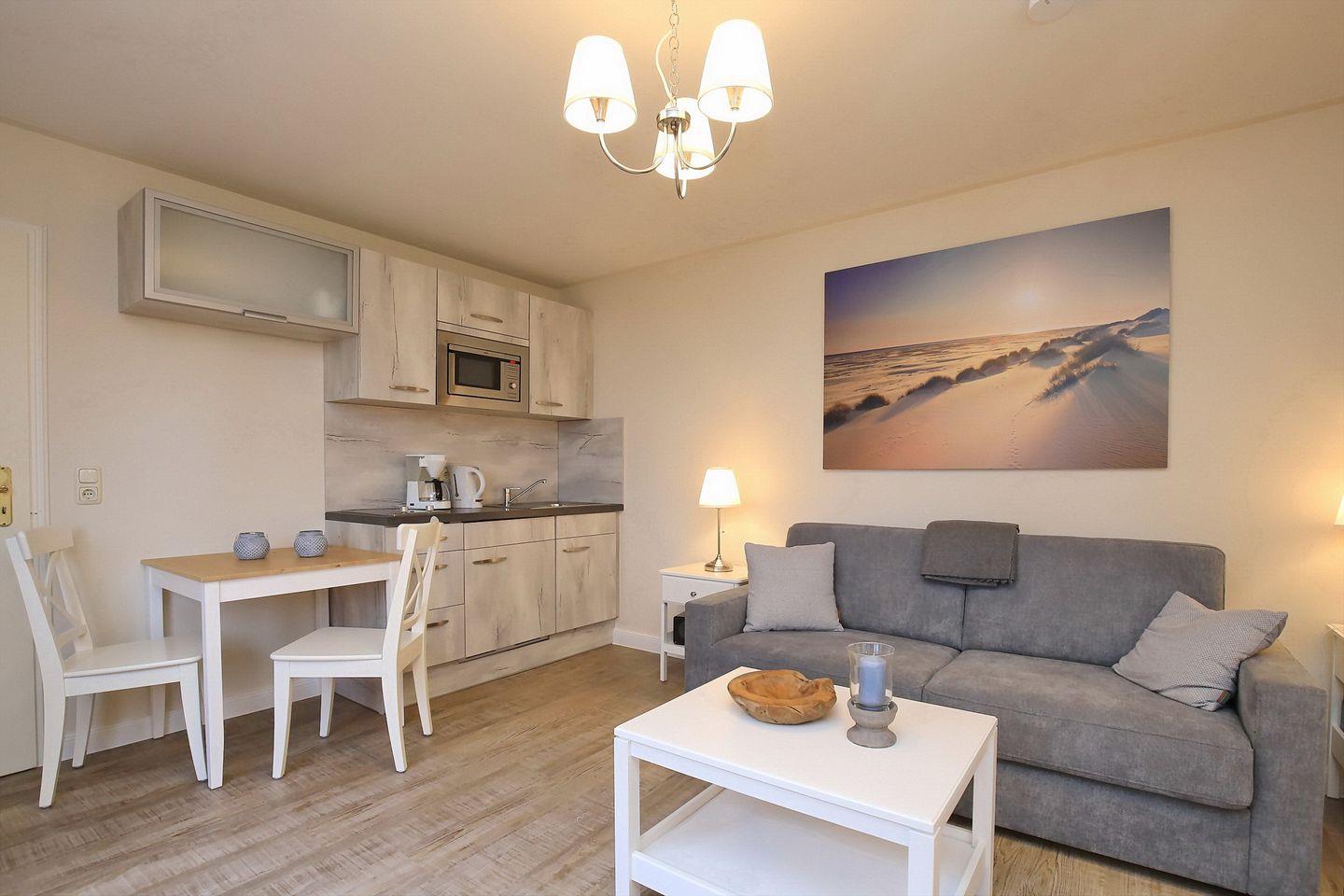 Die Ferienwohnung Nr. 2 in der Strandvilla Krabbe ist eine 1-Zimmerwohnung für bis zu 2 Personen.