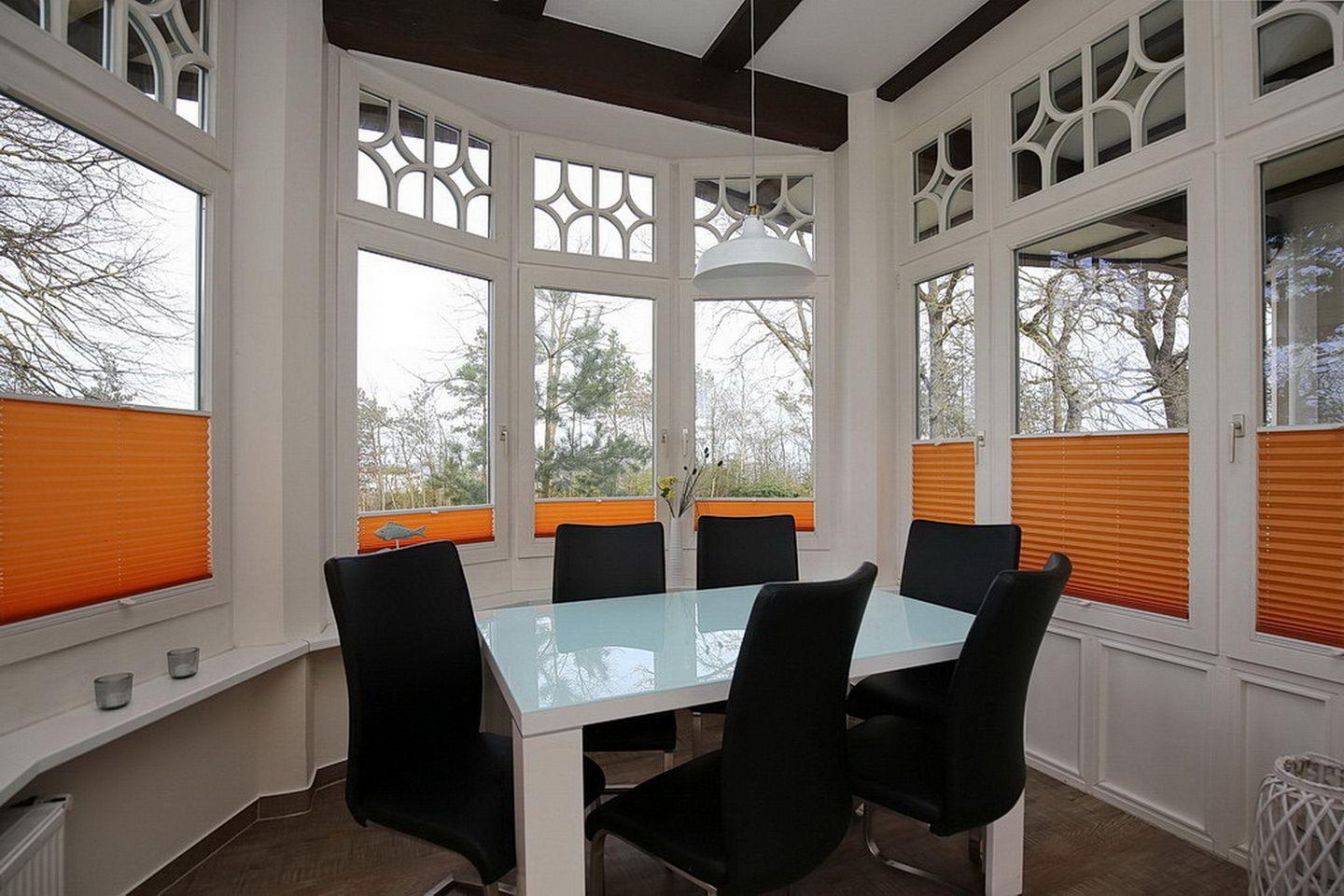 Das großzügige, gemütliche Wohnzimmer dieser Ferienwohnung mit dem Wintergarten wird dich begeistern. Vom Wintergarten aus genießt du einen herrlichen Seeblick. Direkt vom Wohnzimmer gelangst du auf die mit Terrassenmöbeln ausgestattete Terrasse zur Seeseite. Im Wohnbereich befinden sich ein Doppelbett (2 x 80 x 200 cm) und eine Doppelschlafcouch (150 x 200 cm), die als zusätzliche Schlafmöglichkeit für 2 Personen dient. Ein Flatscreen-TV und Hifi-Anlage mit CD sind vorhanden.