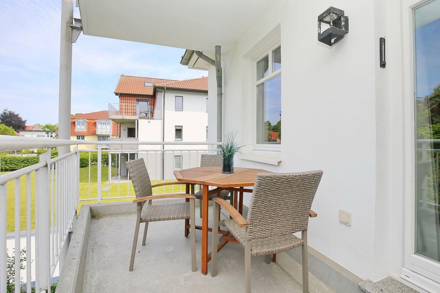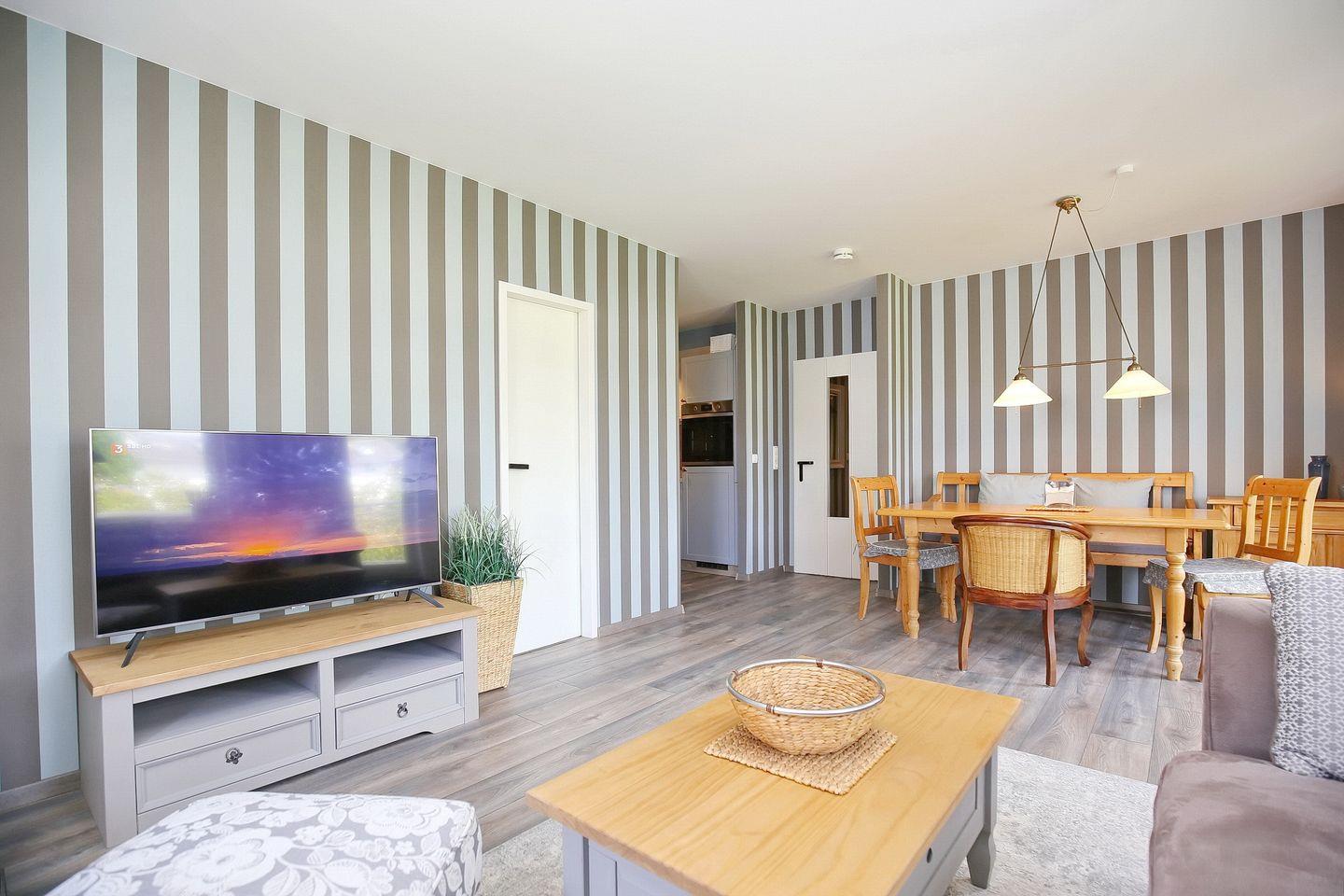 In dieser großzügigen Ferienwohnung mit einer Größe von 60 m² findest du ein helles Wohnzimmer mit Küchenzeile und Zugang zum Balkon, zwei Schlafzimmer und ein Duschbad vor. Zum Strand sind es von der Anlage Seebach nur ca. 80 Meter.