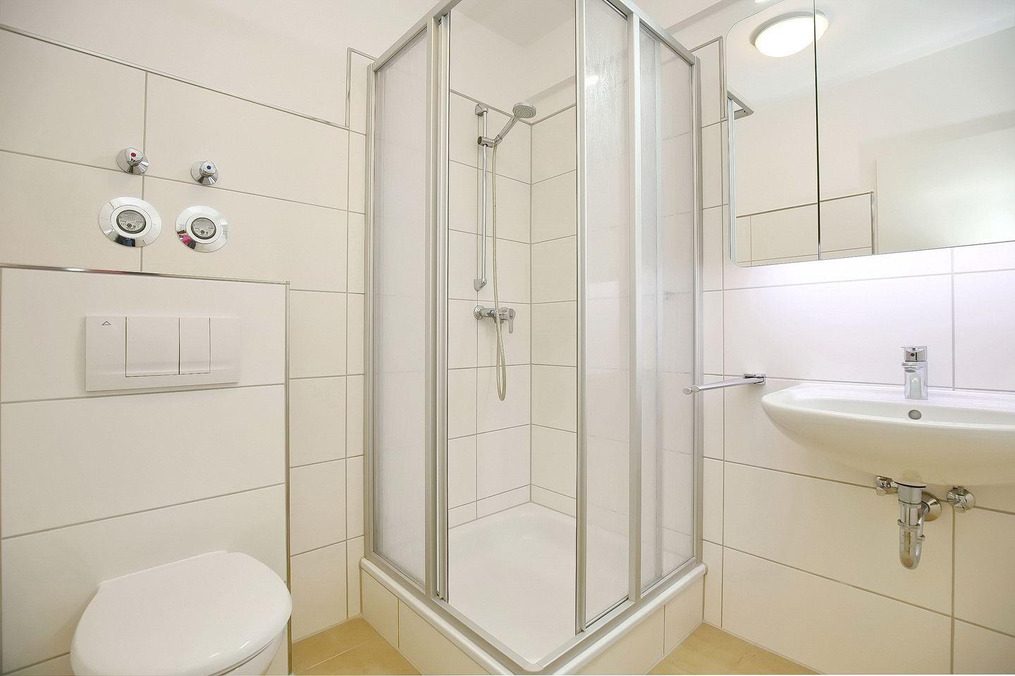 Die Küchenzeile ist in den Wohnbereich integriert und mit Kühlschrank, Geschirrspüler, Herd mit Backofen und 4-Plattenkochfeld gut ausgestattet. Ein großer Esstisch in der Nähe der Küchenzeile bietet den idealen Platz für gemeinsame Mahlzeiten. In einem separaten Abstellraum steht eine Waschmaschine zu deiner Verfügung.