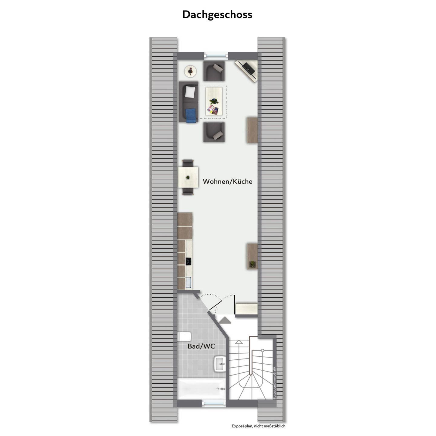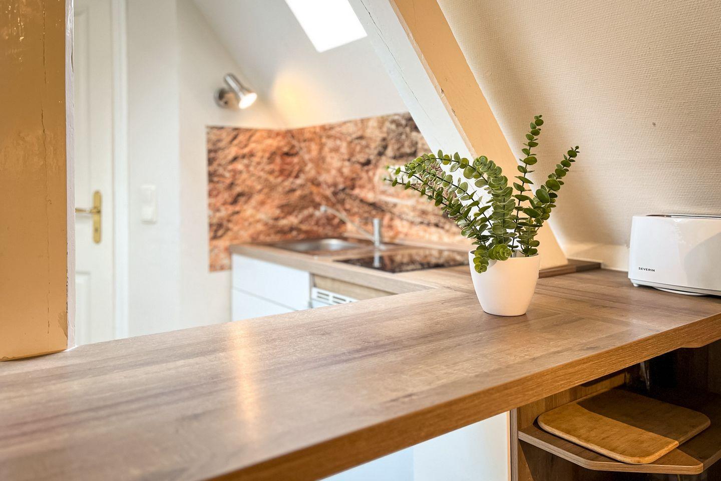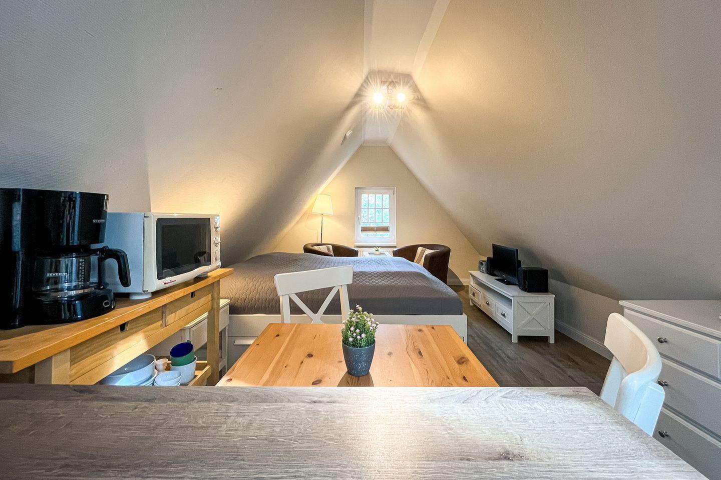 Die Ferienwohnung Nr. 7 in der Strandvilla Krabbe ist eine kleine 1-Zimmer-Wohnung im Dachgeschoß für 2 Personen.