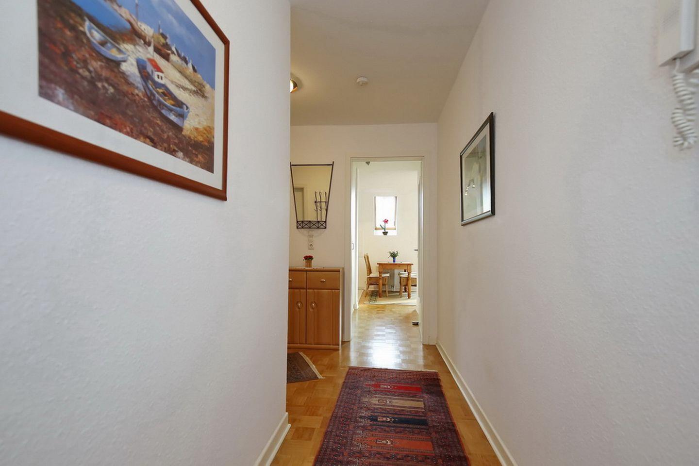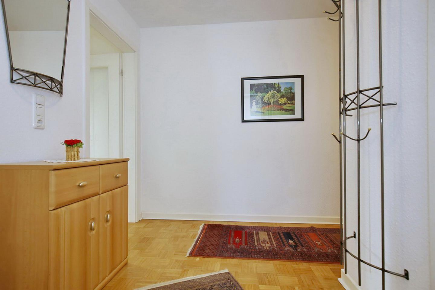 Das moderne Duschbad der Ferienwohnung hat eine Glasdusche. Der Nass- und Küchenbereich wurde gefliest. In den Schlafzimmern ist der Boden mit Laminat und im Wohn- und Essbereich mit Parkett ausgelegt. In dieser Nichtraucherwohnung sind Haustiere nicht erlaubt. Für deinen Urlaub mit Kleinkindern stehen für dich kostenfrei ein Kinderreisebett und ein Kinderhochstuhl bereit sowie ein Bollerwagen (ohne Gewähr). WLAN (ohne Gewähr) inklusive.