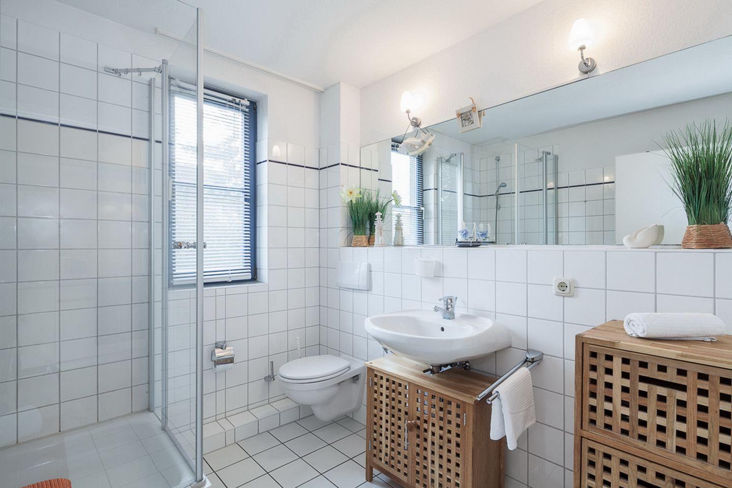 Das Duschbad mit Fenster bietet viel Platz für die ganze Familie. In einem kleinen Abstellraum direkt bei der Küchenzeile im Flur findest du zusätzlichen Stauraum. Der Boden im Wohn- und Küchenbereich sowie im Bad ist gefliest. Das Schlafzimmer ist mit Teppichboden ausgelegt. Bitte beachte, dass es sich um eine Nichtraucherwohnung handelt und Haustiere nicht erlaubt sind.