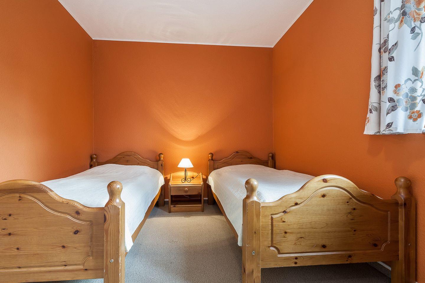 Im Schlafzimmer erwarten dich zwei Einzelbetten (90 x 200 cm), ein geräumiger Kleiderschrank und ein 2. Flachbildfernseher. Das Schlafzimmerfenster kann mit einer Jalousie abgedunkelt werden. Ein großer Kleiderschrank im Flur steht für deine Garderobe zur Verfügung.