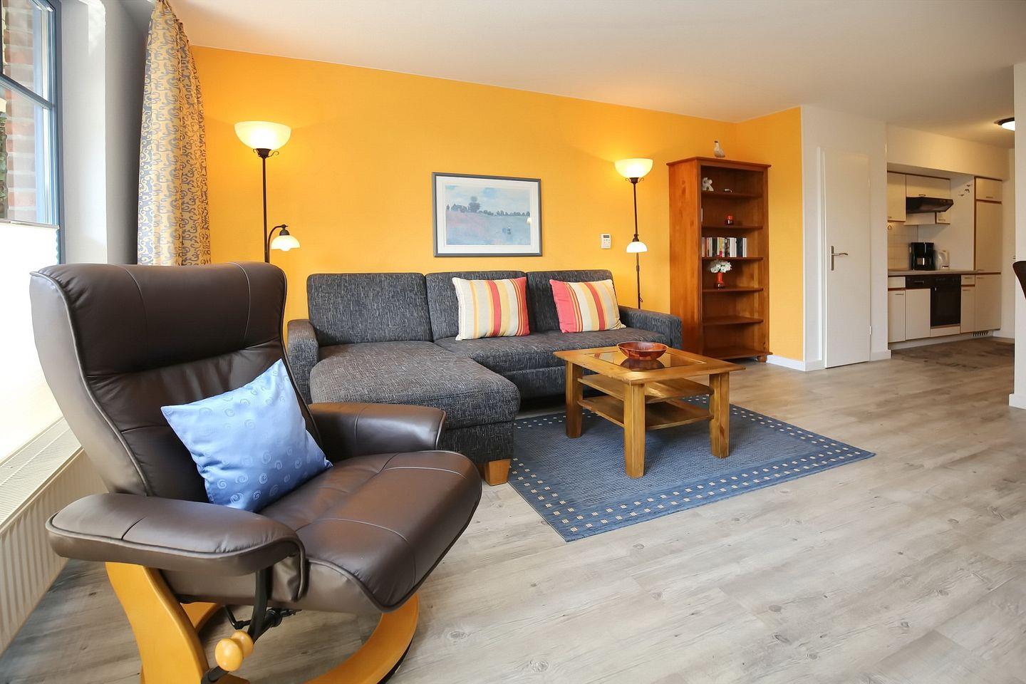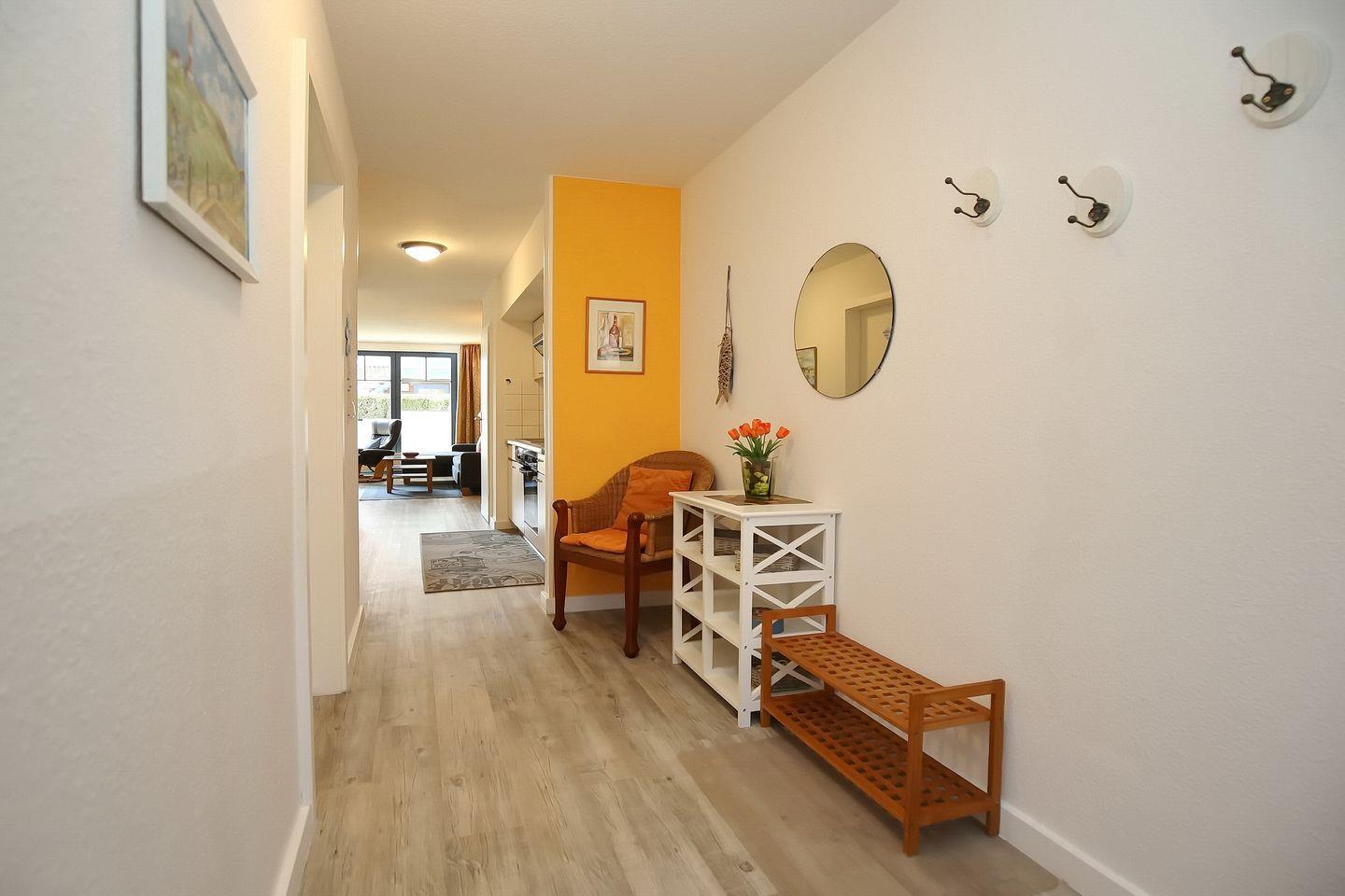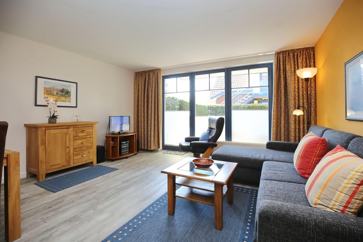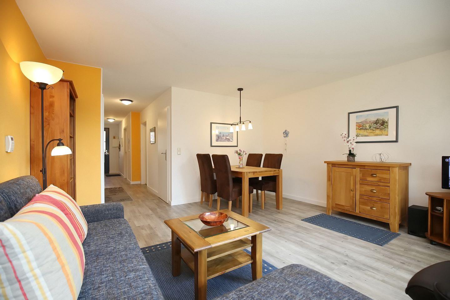 Es erwartet dich in Süd-West-Lage eine ansprechend eingerichtete Ferienwohnung im Erdgeschoss des Hauses 2. Auf ca. 55 m² bewohnst du einen Wohn- und Essbereich, ein Schlafzimmer, eine Küchenzeile und ein Duschbad. Zum Strand sind es vom Feriendorf Papillon nur etwa 250 m.