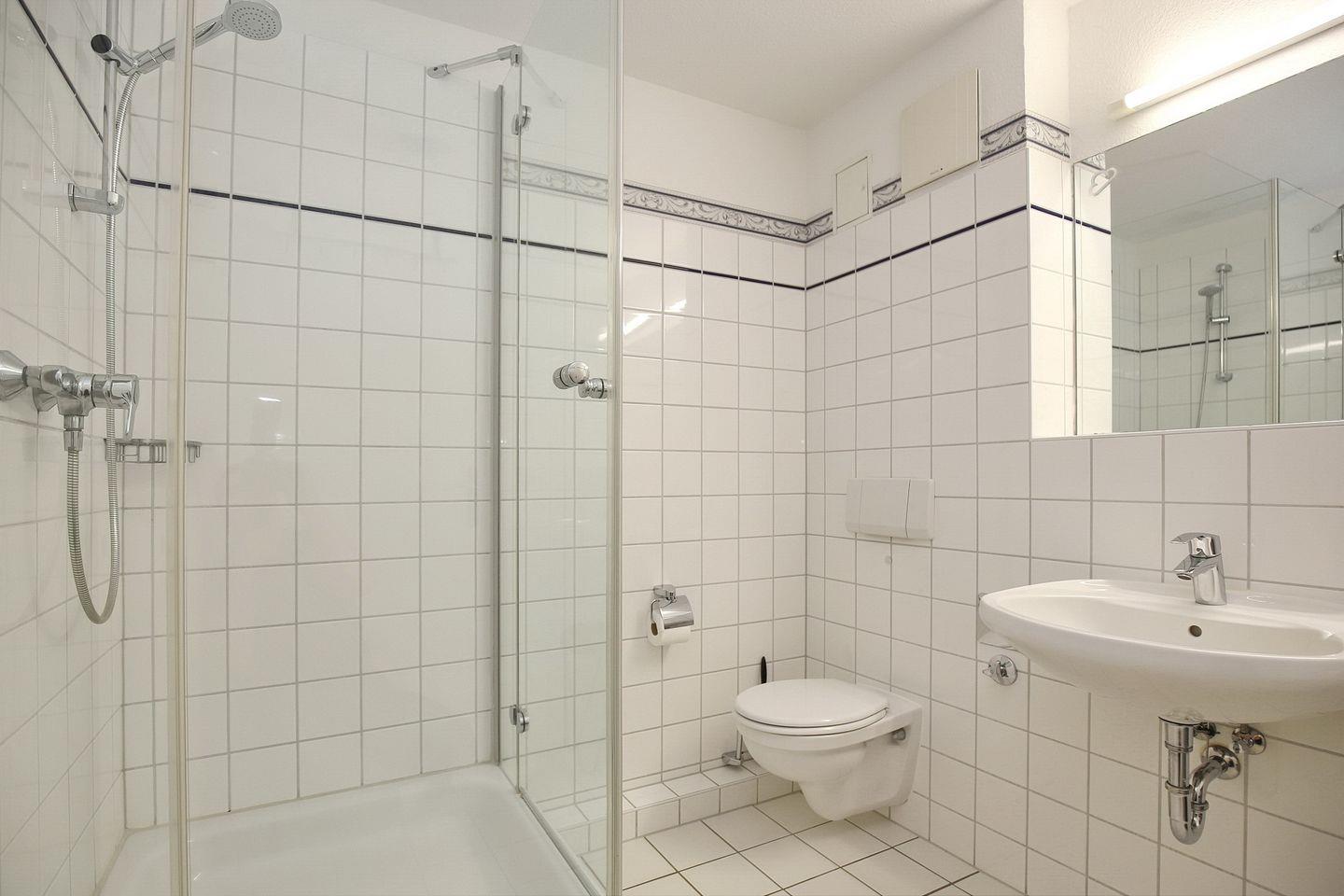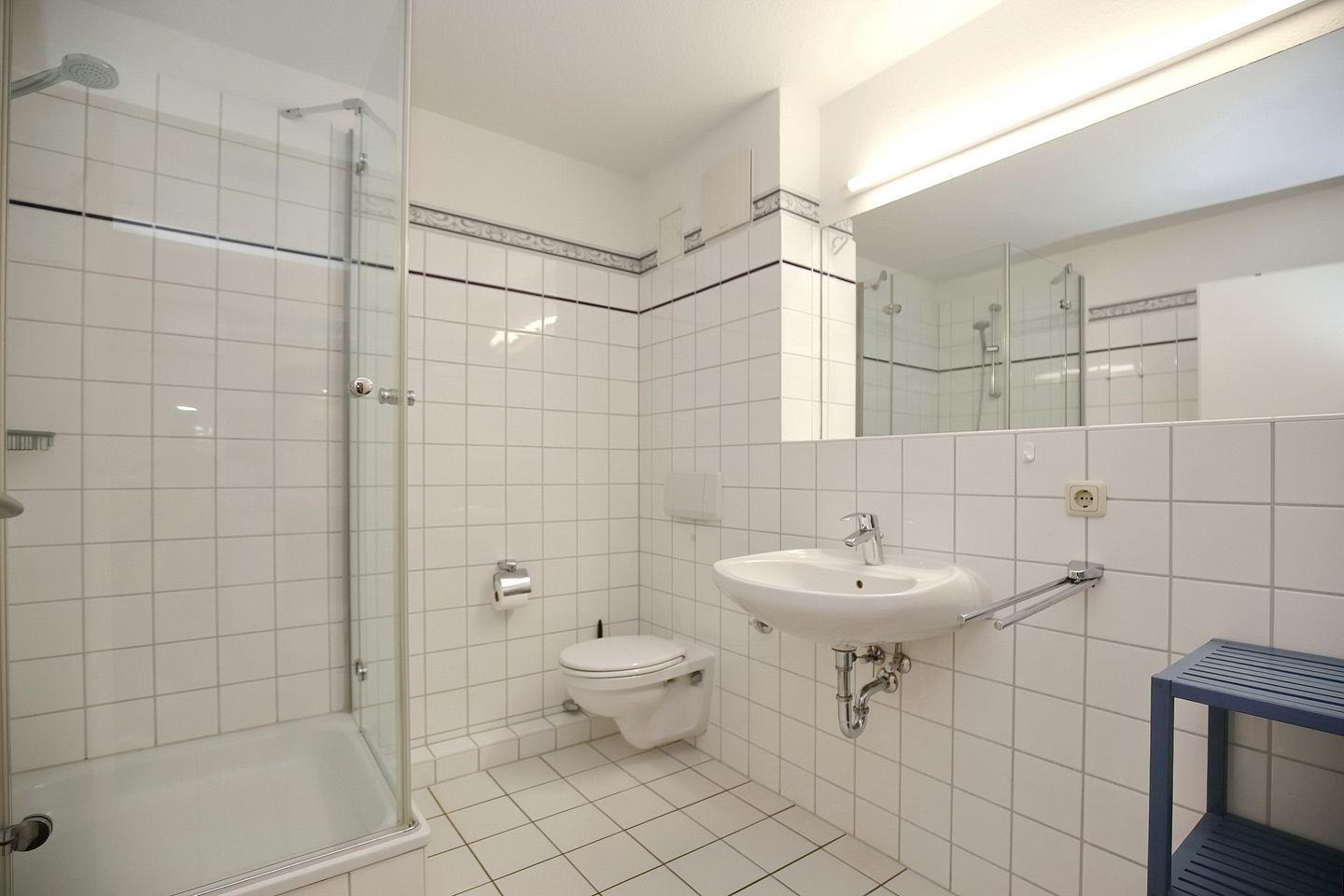 Das geflieste Duschbad bietet viel Platz für die ganze Familie. Fahrräder können im Fahrradständer am Haus abgestellt werden. In dieser Nichtraucherwohnung sind maximal zwei Haustiere gestattet.