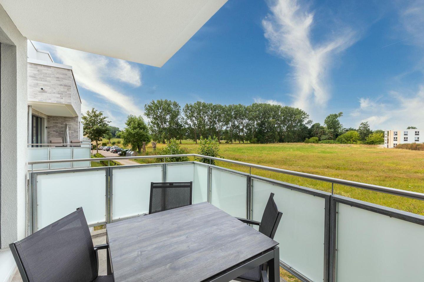 Modernes, strandnahes Apartment für zwei mit sonnigem Balkon und Blick ins Grüne