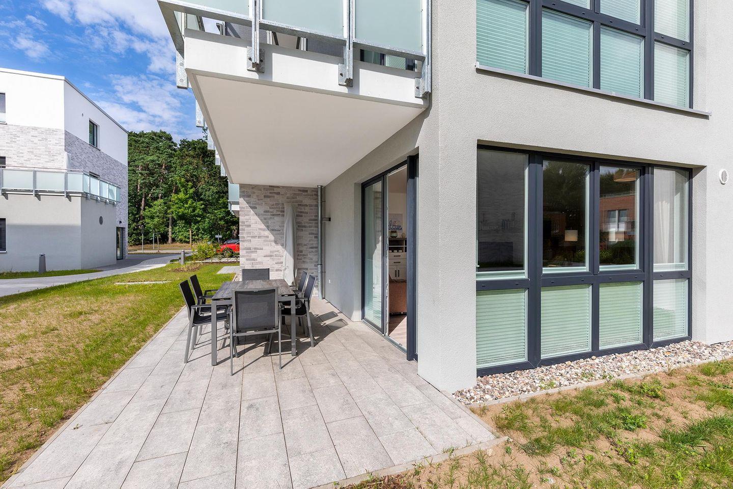 Das 82 m² große und barrierearme 3-Zimmer Apartment ist für bis zu 6 Personen geeignet. Besonders hervorzuheben ist die großzügige, sonnige Terrasse in südwestlicher Lage auf der ihr gesellige Stunden mit eurer Familie verbringen und dabei die Sonne und das milde Klima der Ostsee genießen könnt. Das Apartment verfügt über den Luxus von zwei Bädern, so beginnt der Tag bereits am Morgen vollkommen entspannt.