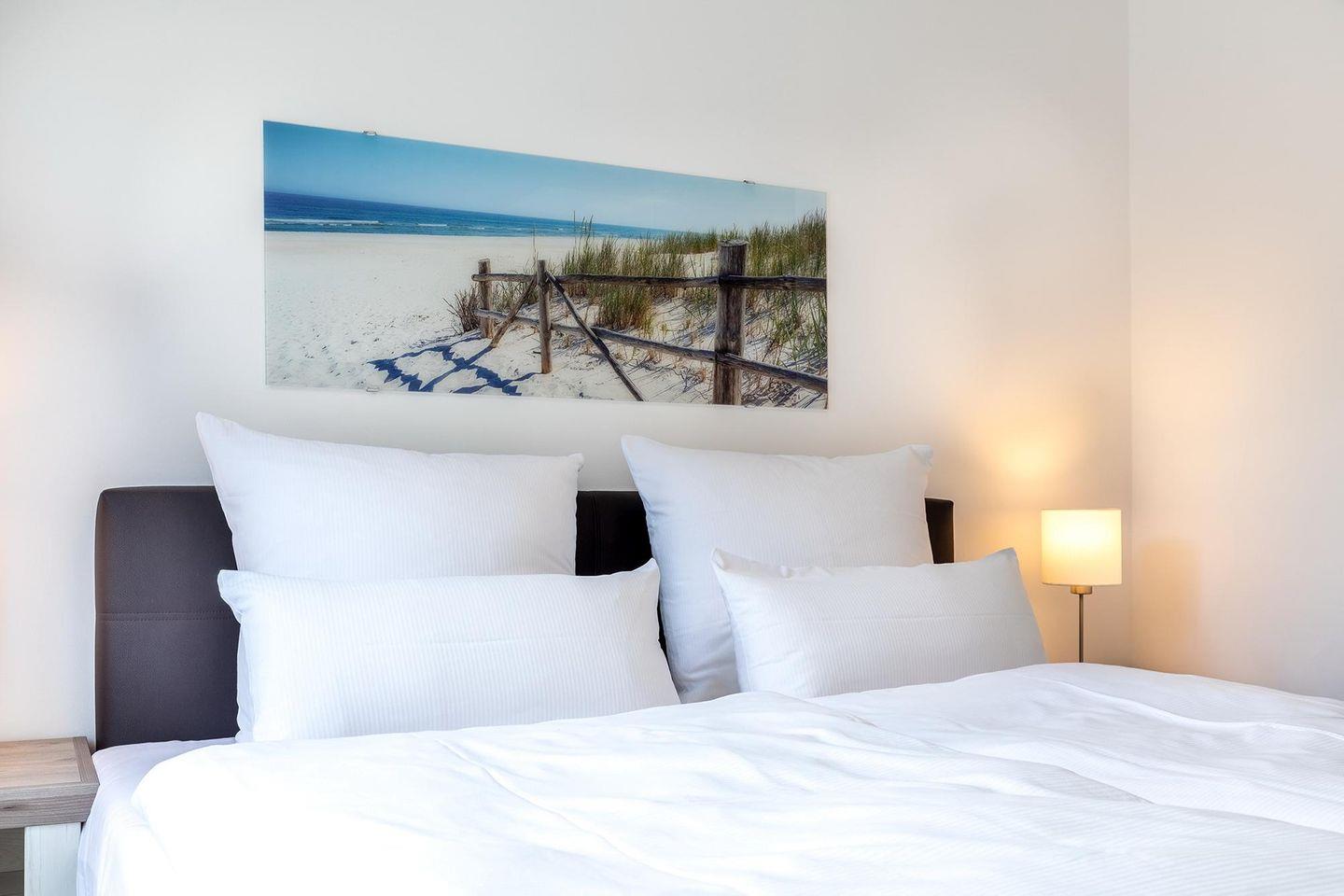 Das 84 m² große 3-Zimmer Apartment ist für bis zu 6 Personen geeignet. Besonders hervorzuheben sind die zwei Dachterrassen in Nord-Ost bzw. Süd-West Lage; hier könnt ihr den Ausblick und die wohltuende Meeresluft genießen. Das Apartment verfügt über den Luxus von zwei Bädern.