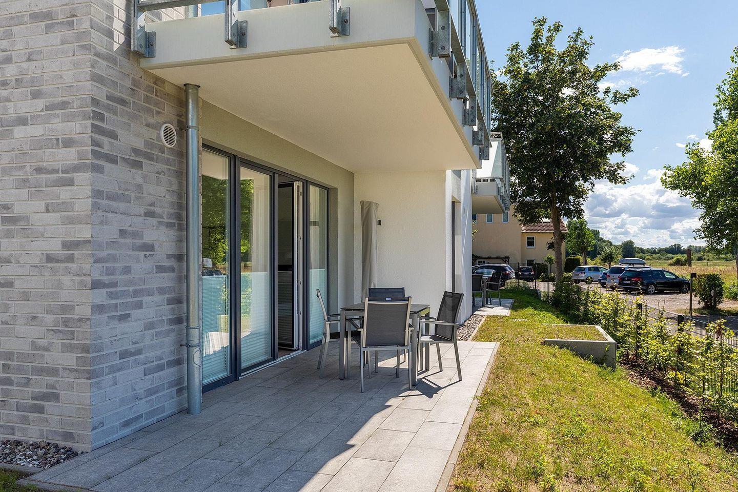 Das 55 m² große und barrierearme 2-Zimmer Apartment ist für bis zu 4 Personen geeignet. Besonders hervorzuheben ist die großzügige Terrasse in West-Lage mit Blick über Felder und Wiesen; hier lässt sich nach einem erholsamen Urlaubstag die Sonne und die Seeluft bis in den Abend hinein genießen.