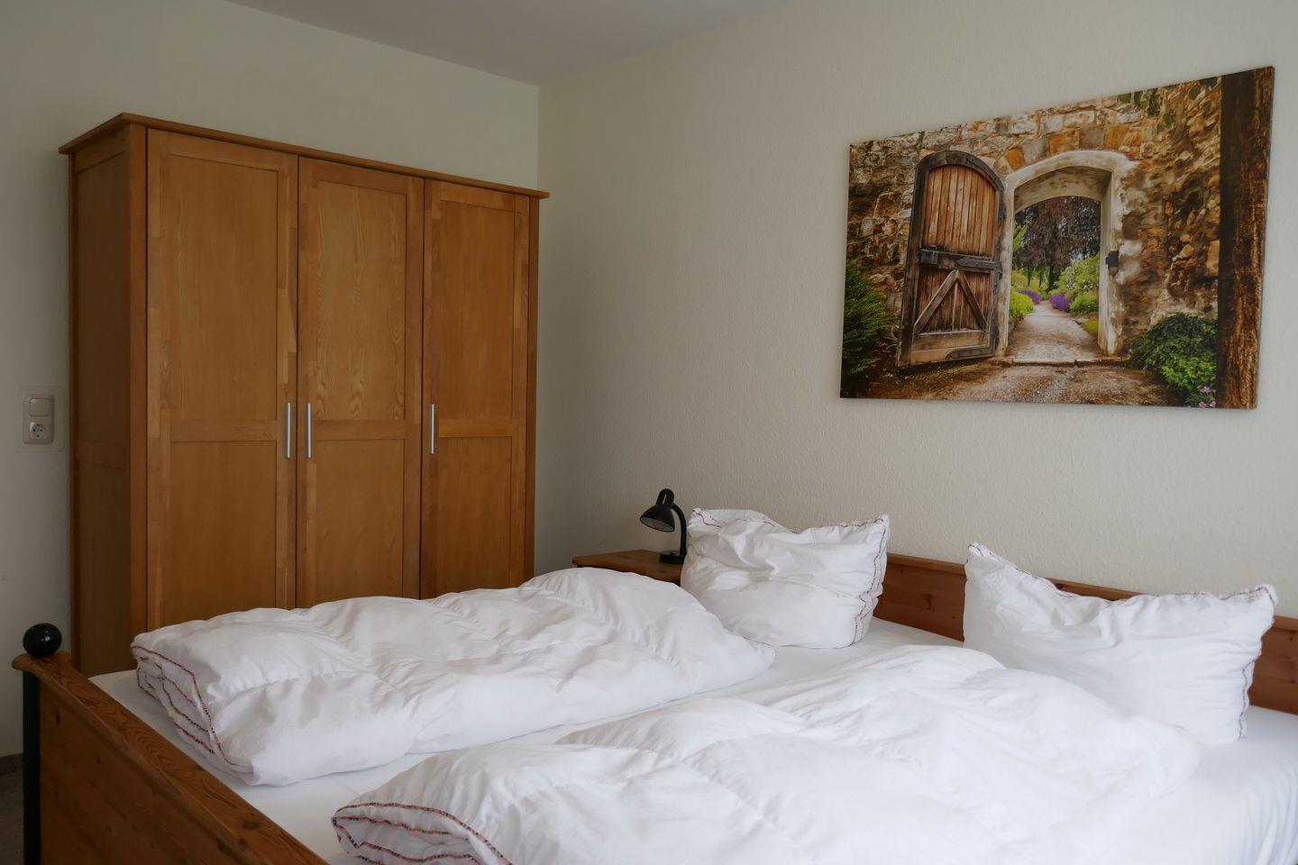 Die Nichtraucher-Ferienwohnung mit kostenfreiem WLAN besteht aus einem Schlafzimmer mit Doppelbett sowie einem Wohnzimmer mit Smart-TV und HiFi-Anlage. Zur Ausstattung gehören weiterhin eine separate Küche mit Backofen, Kühlschrank mit Gefrierfach, Wasserkocher, Kaffeemaschine und Toaster, ein praktischer Abstellraum und eine schöne, sonnige Terrasse. Das Bad mit Dusche verfügt über Fußbodenheizung.