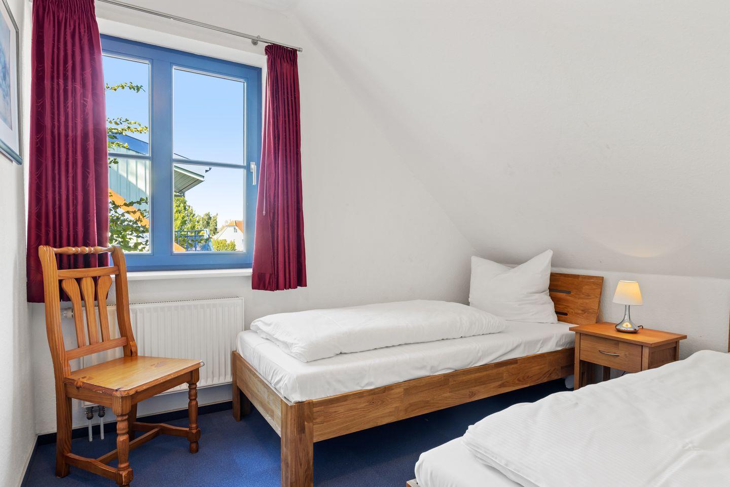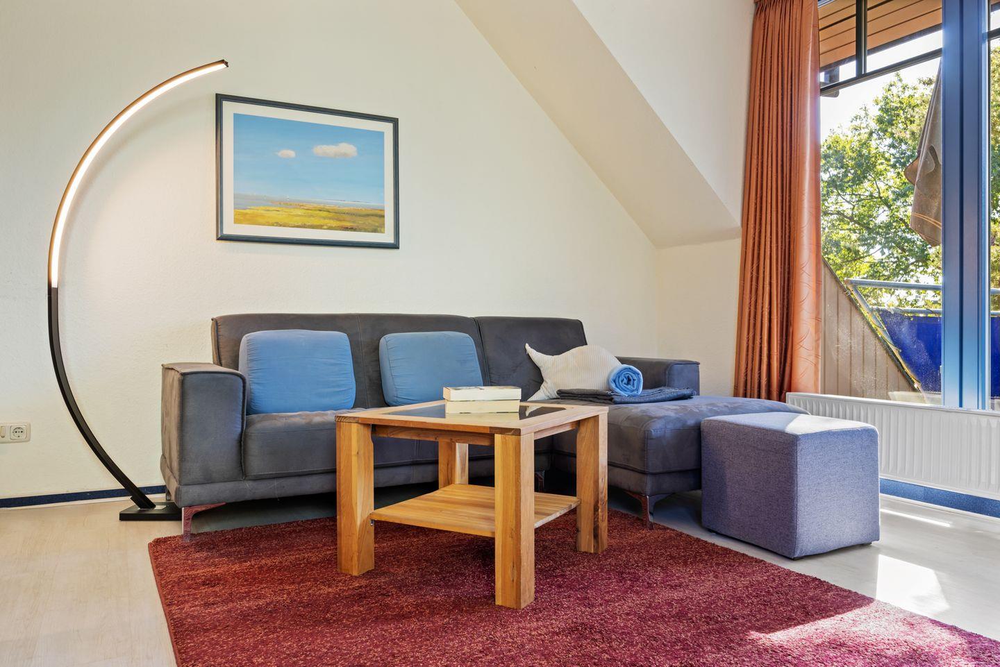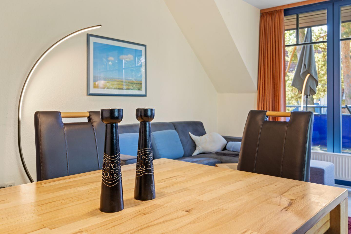 Das Nichtraucher-Apartment verfügt über drei separate Schlafzimmer; zwei mit jeweils einem Doppelbett sowie eines mit zwei Einzelbetten. Auf dem überdachten Süd-Balkon könnt ihr die Sonne genießen. Zur Ausstattung gehören eine voll ausgestattete offene Küche mit Backofen, Geschirrspüler, Wasserkocher, Kaffeemaschine, Mikrowelle und Toaster. Im Wohnbereich befinden sich ein Fernseher, eine HiFi-Anlage und ein DVD-Player. Auf Wunsch kann ein Kinderbett gegen Entgelt zur Verfügung gestellt werden. Ein Kinderhochstuhl ist in der Ferienwohnung vorhanden. Ein kostenfreier WLAN Anschluss steht euch zur Verfügung.