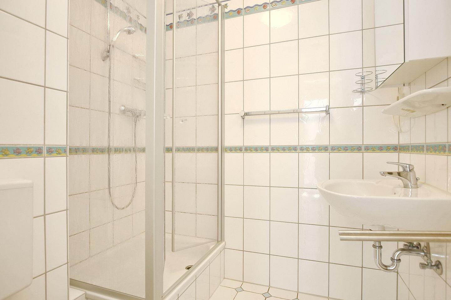Das Duschbad ist freundlich gestaltet. In dieser Nichtraucherwohnung sind Haustiere nicht erlaubt.