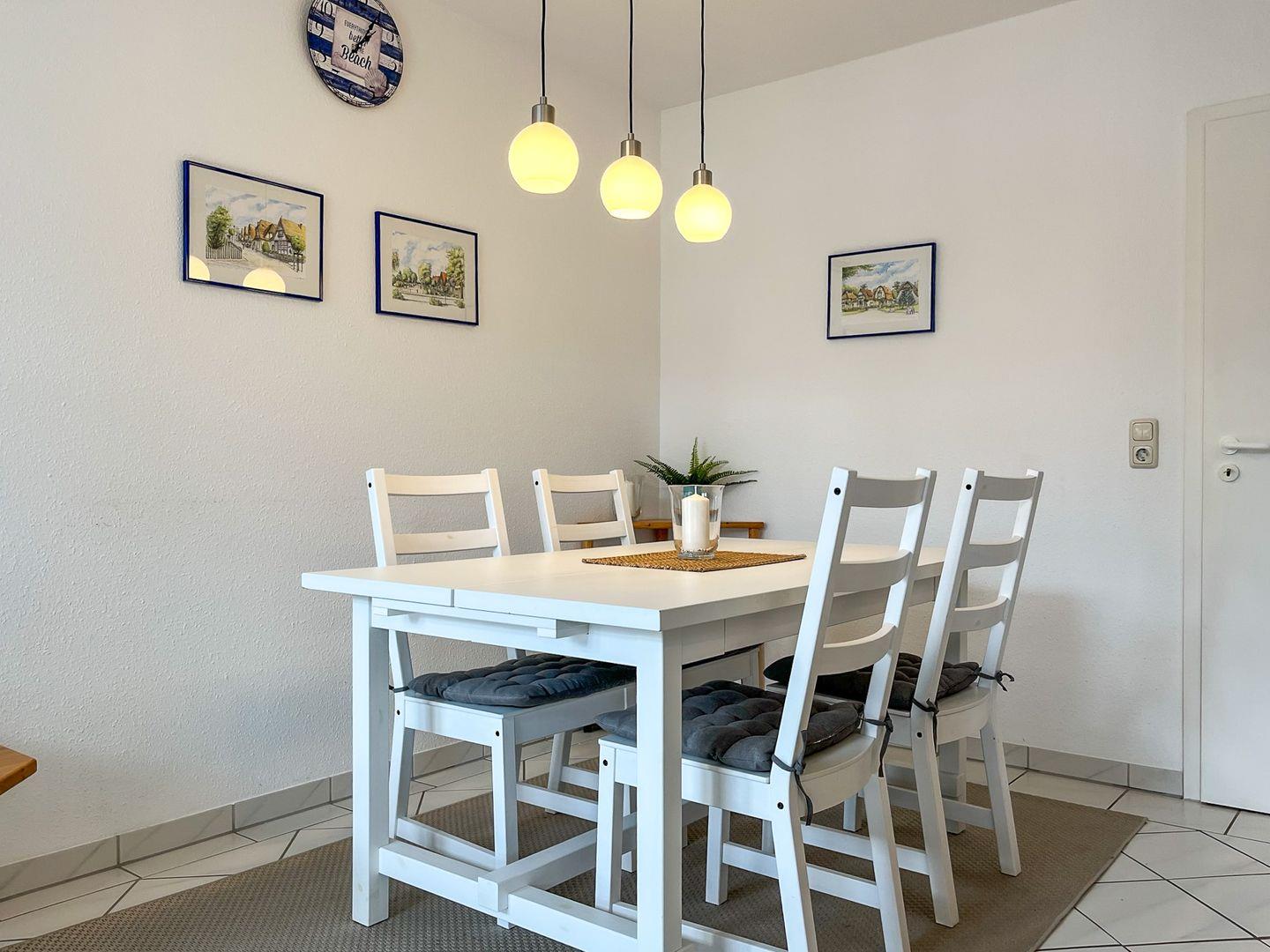 Die 2-Zimmer-Ferienwohnung liegt im 1. OG und ist über eine separate Außentreppe zu erreichen. Auf ca. 47 m² stehen dir ein Balkon in süd-östlicher Lage, ein Wohn- und Essbereich, eine Küche, ein Schlafzimmer und ein Duschbad zur Verfügung. Die Strandentfernung von der Anlage Sünnslag beträgt ca. 400 m.