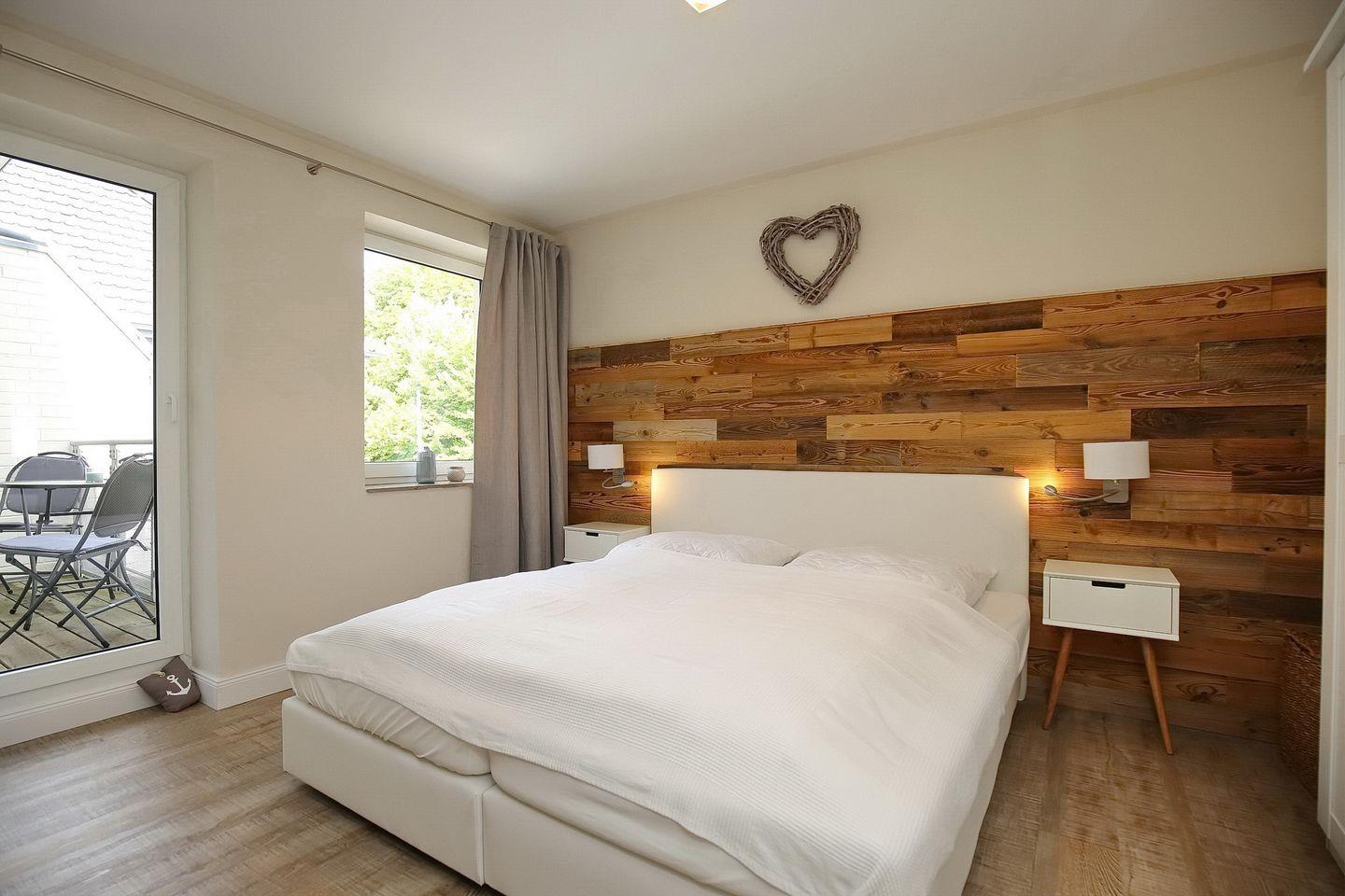 Das Schlafzimmer verfügt über ein Doppelbett (2 x 90 x 200 cm), einen Kleiderschrank mit viel Stauraum und einen zweiten Flachbild-TV. Blickdichte Vorhänge sind im Schlafzimmer vorhanden. Der Boden ist hier ebenfalls mit Design-Belag ausgelegt. Die Ferienwohnung ist eine Nichtraucherwohnung. max. 2 Haustiere sind hier gestattet.