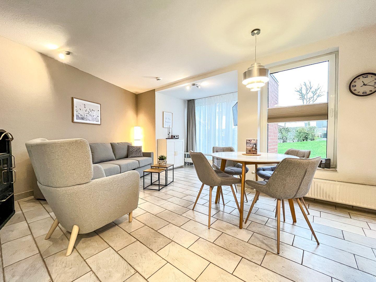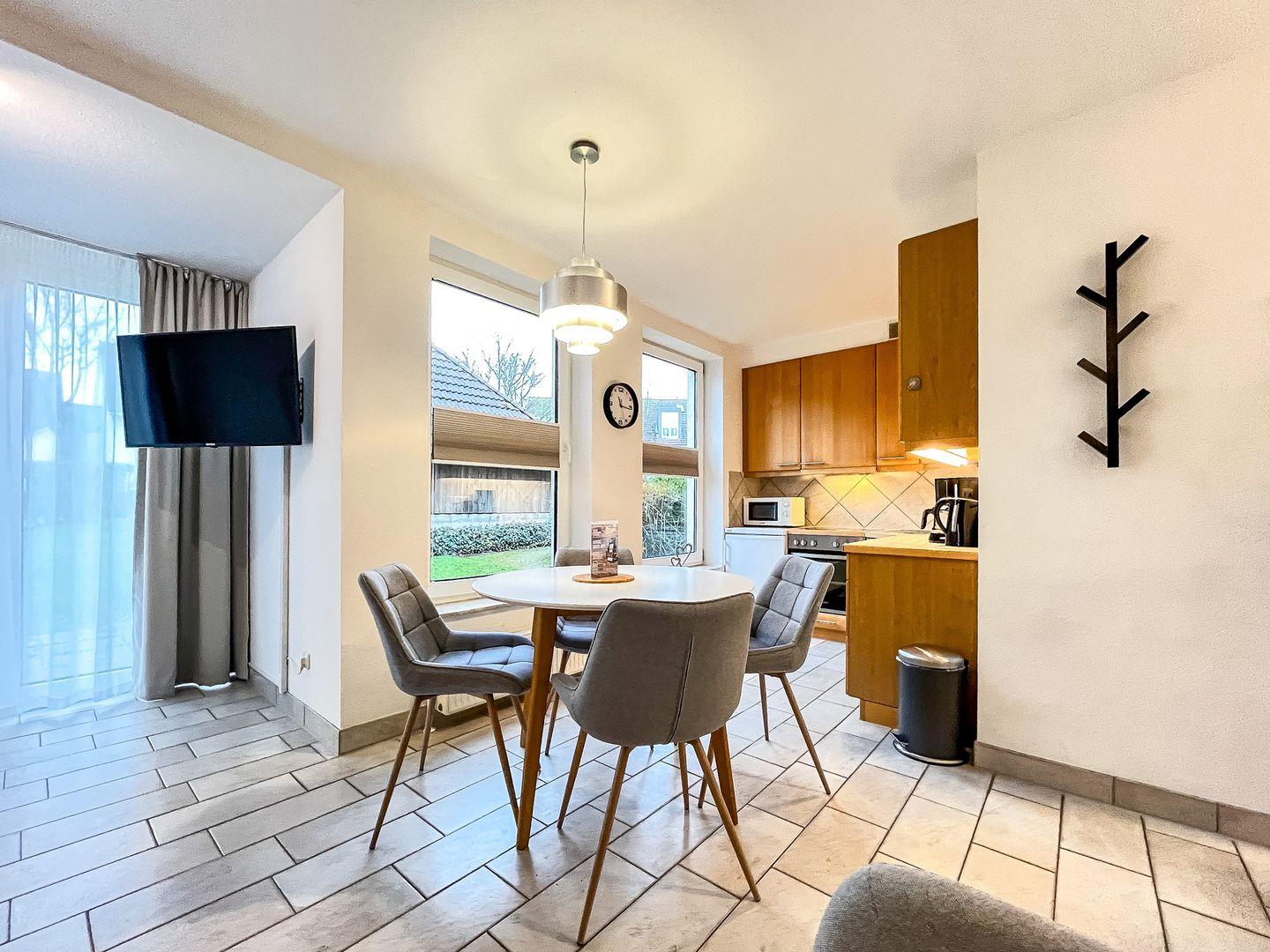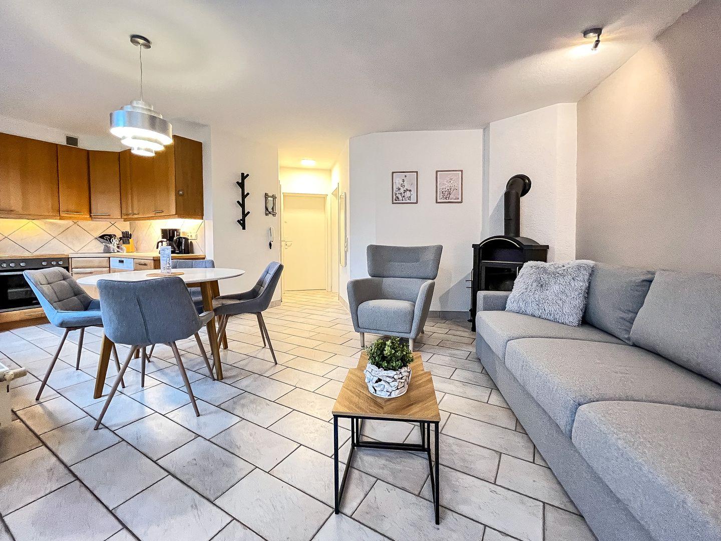 Die Ferienwohnung Nr. 70 in der Ferienanlage Sünnslag ist eine 2-Zimmer-Wohnung für bis zu 4 Personen. Diese wurde im Dezember 2024 modernisiert.