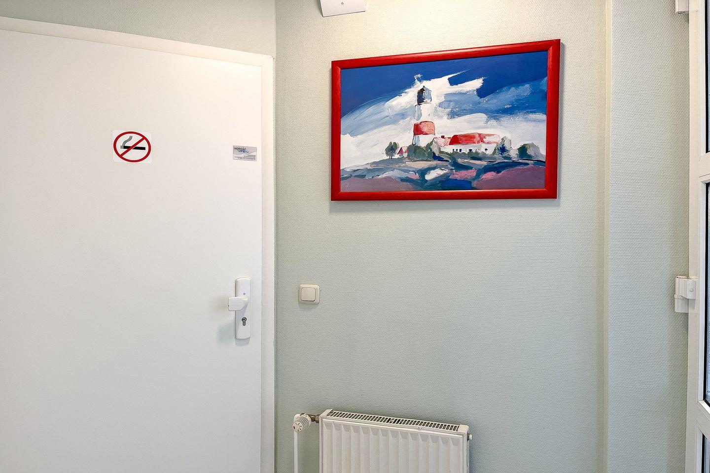 Du bewohnst im Erdgeschoss ein komfortables 2-Zimmer-Apartment mit Terrasse in Südlage. Es erwartet dich ein Wohn-/ Essbereich mit Kamin, ein Schlafzimmer, eine Küchenzeile sowie ein Duschbad. Die Strandentfernung beträgt von der Anlage Sünnslag ca. 400 m.