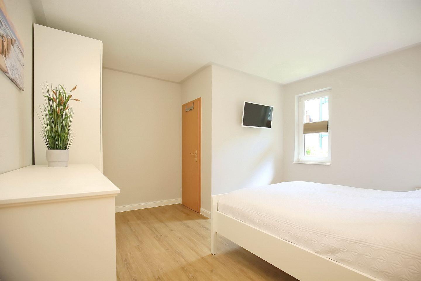 Das zweite Schlafzimmer ist mit einem hochwertigen Doppelbett mit durchgehender Matratze (1 x 180 x 200 cm), einem Kleiderschrank sowie einer Kommode ausgestattet. Hier ist ein zweiter TV vorhanden.