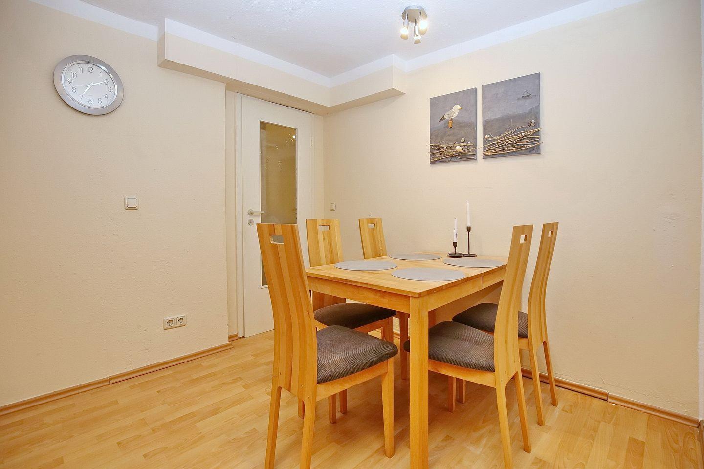 Du bewohnst im Souterrain ein 2-Zi. Apartment mit ca. 45 m² sowie einer Terrasse in Süd-Lage. Es erwartet dich ein Wohn-/ Essbereich, ein Schlafzimmer, eine Kochnische sowie ein Duschbad. Die Strandentfernung beträgt ca. 500 m.