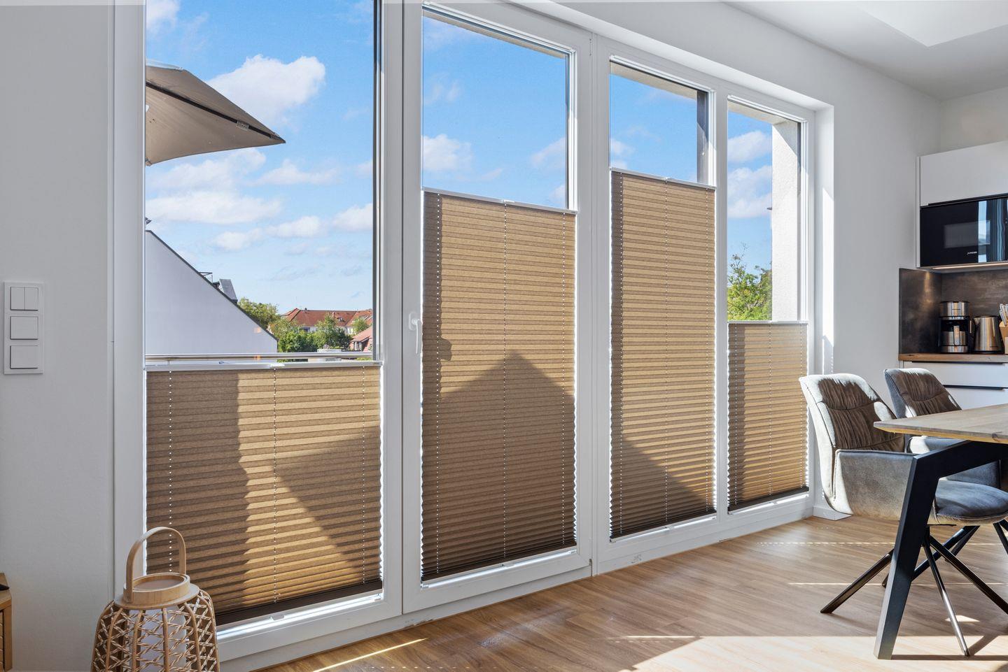 Im angeschlossenen, behaglichen Wohn-Essbereich befindet sich ein großer SMART-TV (50 Zoll), ein Bluetooth-Speaker, Gesellschaftsspiele und Bücher. Von hier aus habt ihr Zugang zum großen Balkon mit Landschaftsblick, ausgestattet mit Gartenmöbeln und Relax-Stuhl. Hier könnt ihr die Ruhe und das wohltuende Meeresklima der nahen Ostsee in privater Atmosphäre genießen.