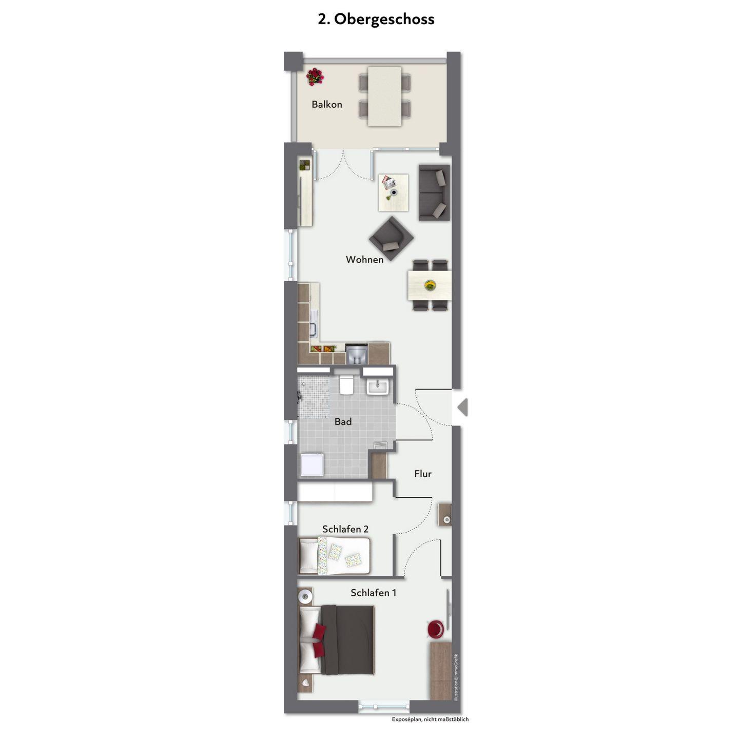 Die Ferienwohnung 18 im Haus 2 der Weißen Villen ist eine 3-Zimmer-Ferienwohnung im 2. Obergeschoss für maximal 3 Personen.