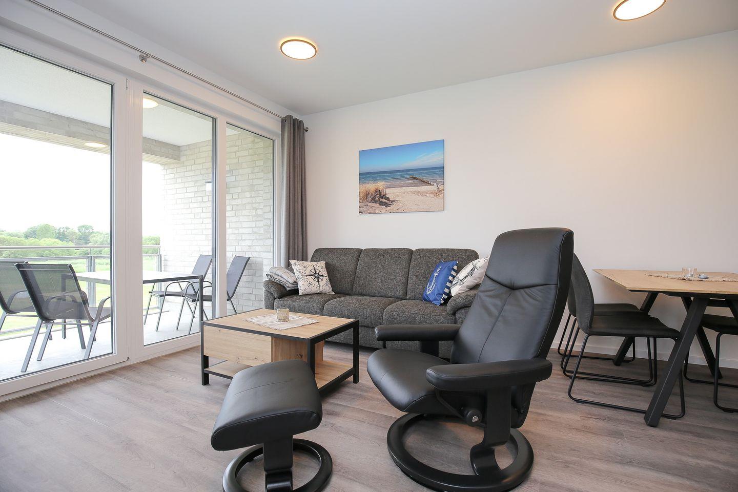 Deine ca. 65 m² große Ferienwohnung ist liebevoll und modern eingerichtet. Du verfügst über ein Wohnzimmer, eine Küche, zwei Schlafzimmer, ein Badezimmer sowie einen Balkon. In der gesamten Wohnung ist ein Vinylboden ausgelegt. Das Badezimmer ist gefliest. Die Strandentfernung beträgt ca. 200 Meter.