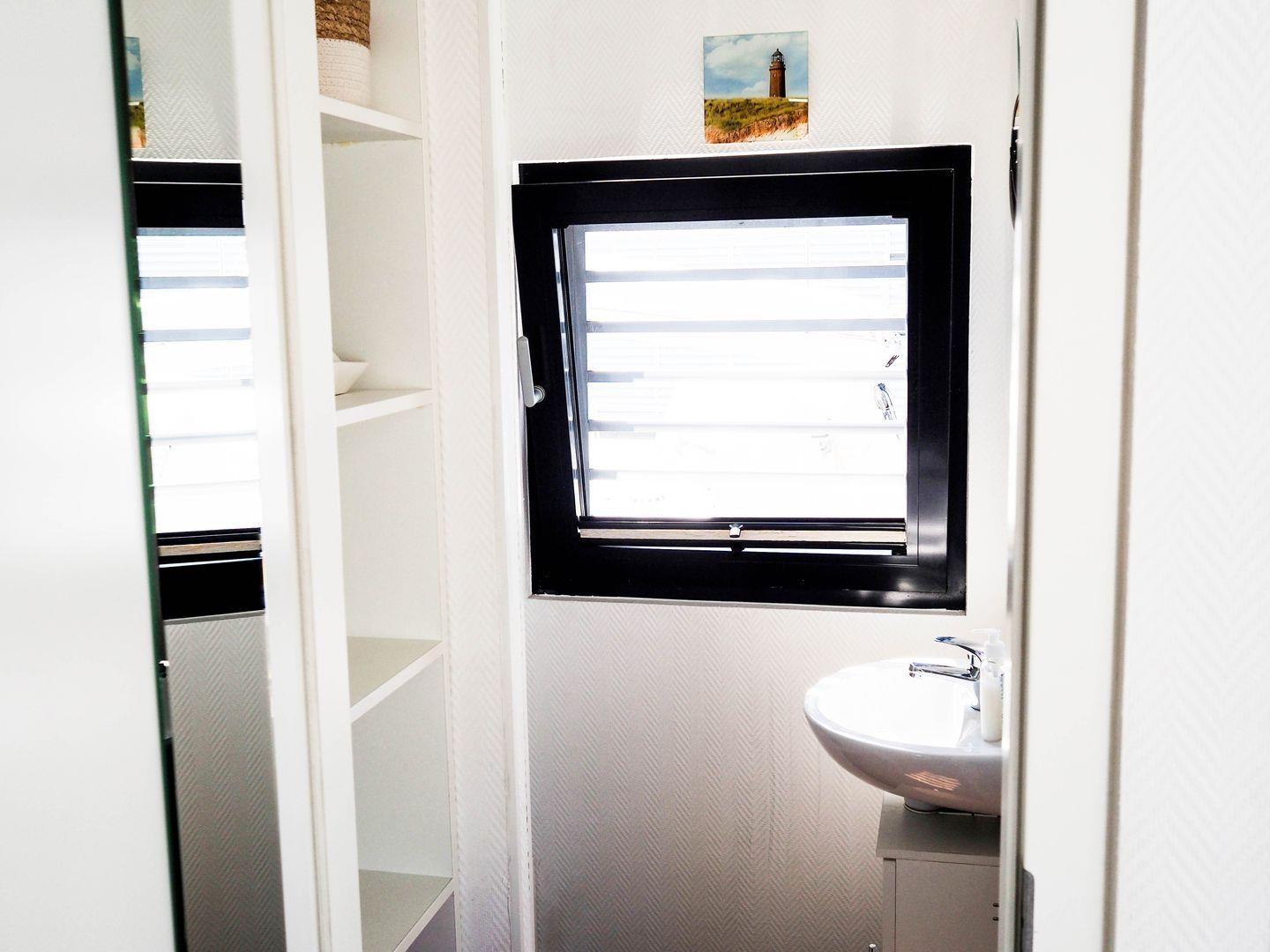 Das Bad mit Dusche und ein WC mit Waschbecken sind jeweils separat angeordnet.