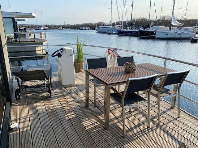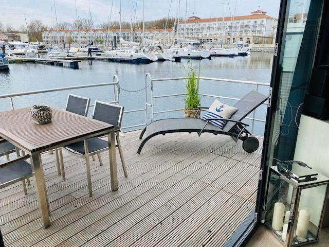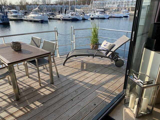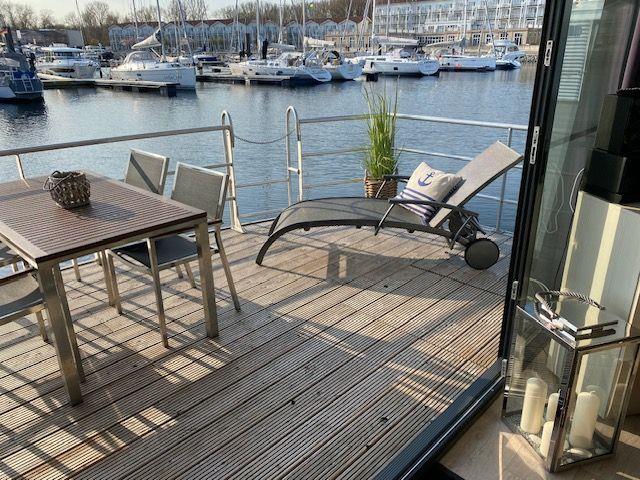 15 qm Terrasse am Bug, möbliert, + Dachterrasse 25 qm, Kostenfreier Parkplatz in der Nähe des Hafens